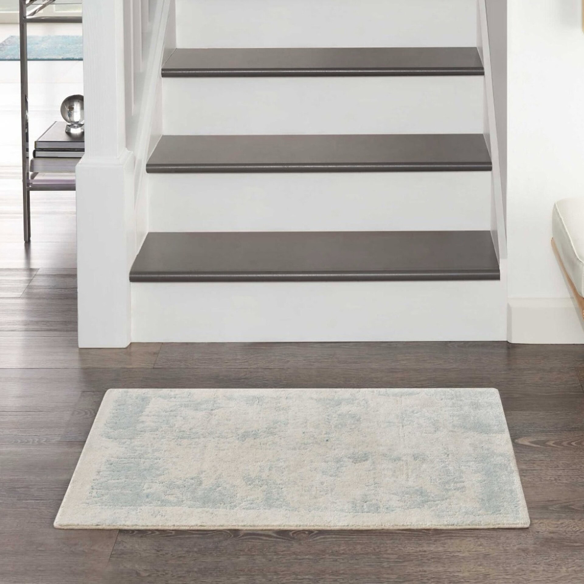 Machine-woven from a high-quality blend of fibers, the rug offers a smooth feel underfoot and long-lasting performance. Its low-pile construction enhances durability while keeping the look polished and versatile. Ideal for everyday use, the Harmony Ivory/Aqua Rug blends soft color transitions with contemporary texture—perfect for interiors that value comfort and visual ease in equal measure.