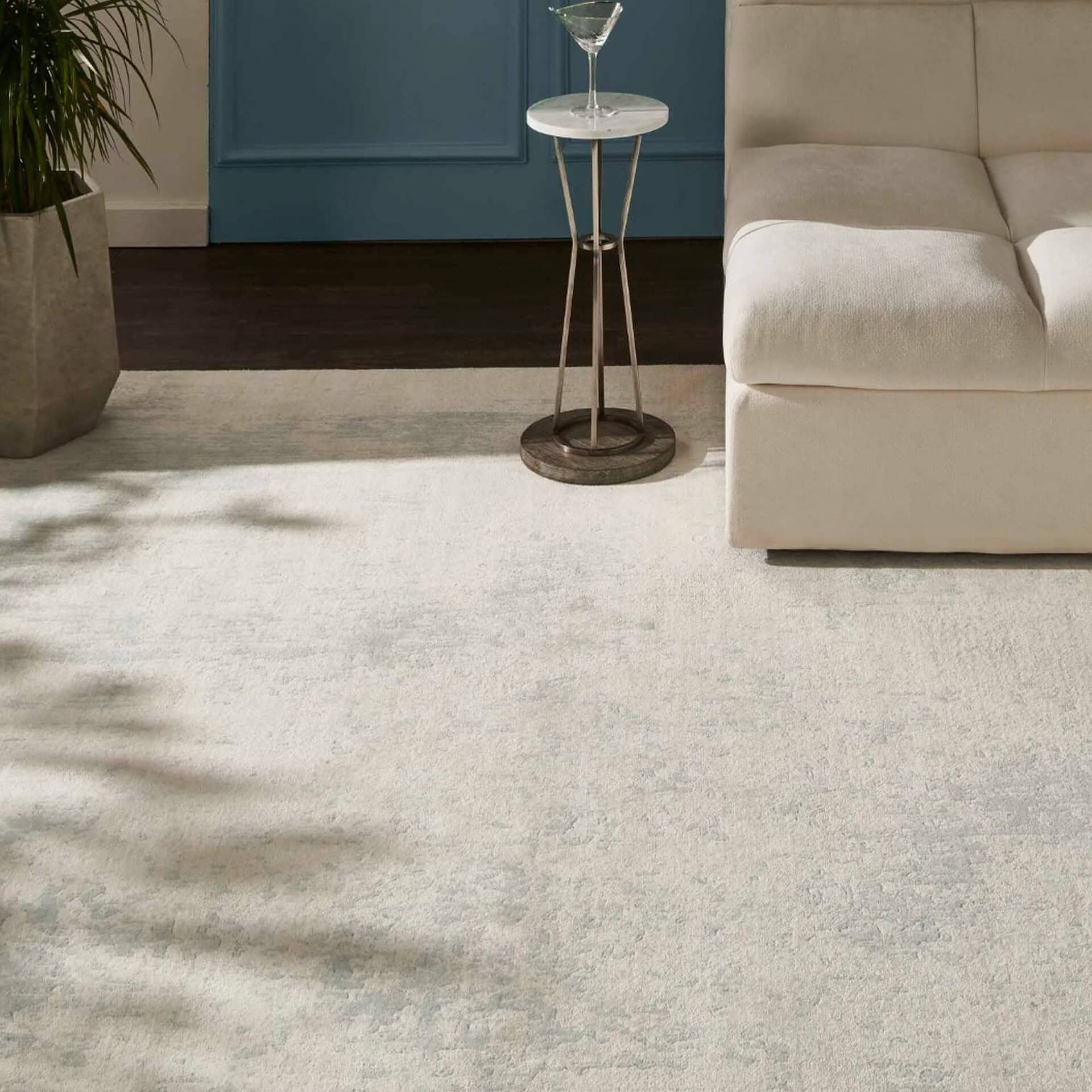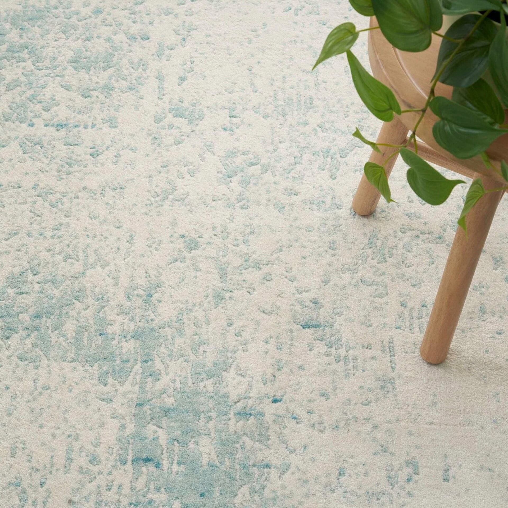The Harmony Ivory/Aqua Rug brings lightness and subtle movement to modern interiors with a soft, layered palette of ivory, pale blue, and gentle grey. Its abstract pattern suggests shifting light or cloud cover, making it a serene foundation for both neutral and color-forward spaces. Elegant without being overstated, this piece adds a touch of airiness and calm to living rooms, bedrooms, or open-concept environments.