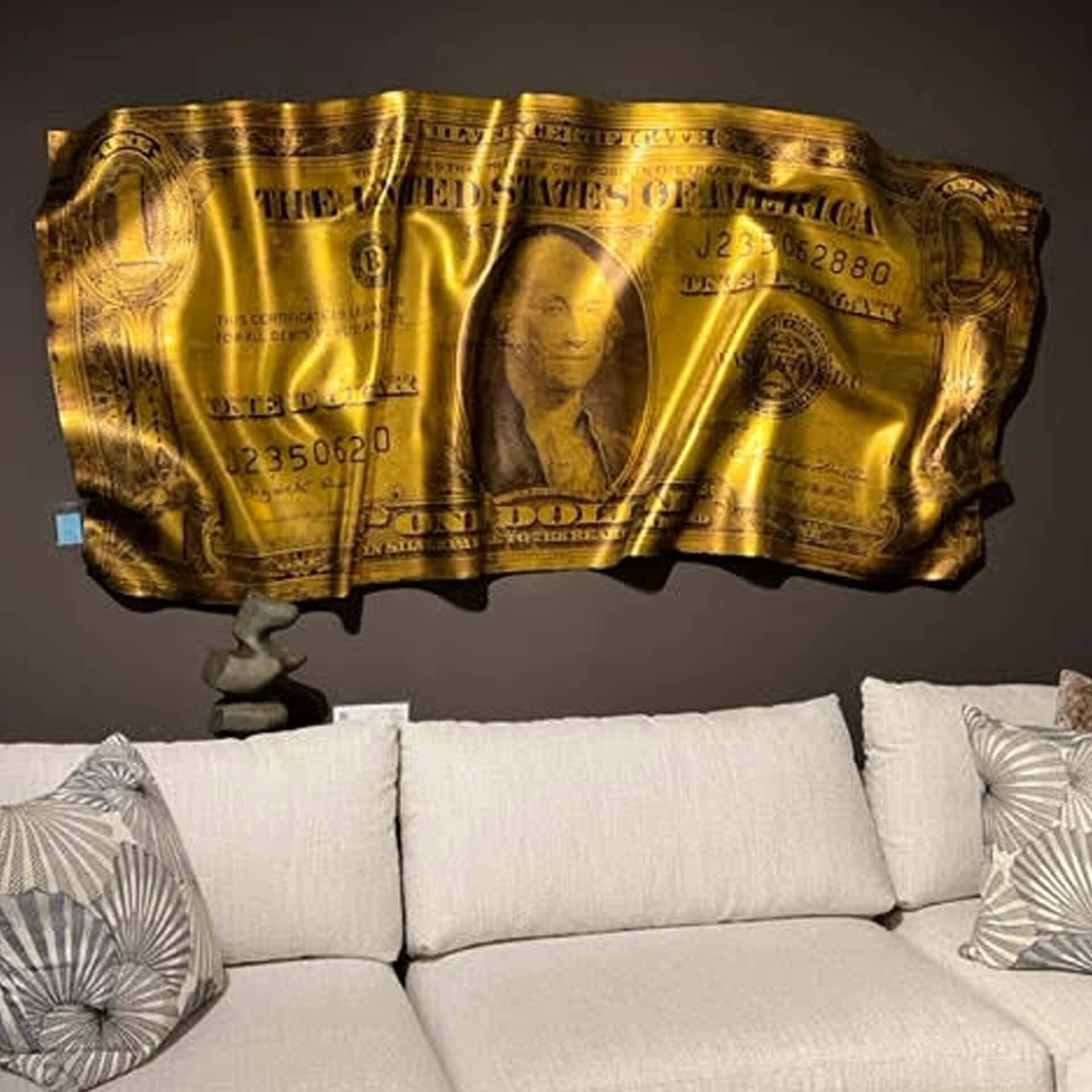 Everything is better when dipped in gold, even your money according to Cobra Art! The Crushed Dollar will never be something to miss when placed in any desired room of the home. With its three-dimensional features and fluidity, this piece feels as if it is peeling off of a wall.