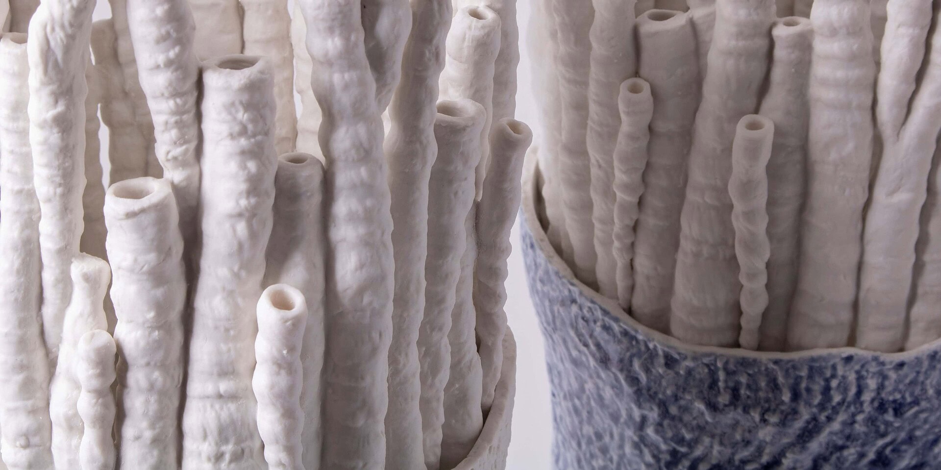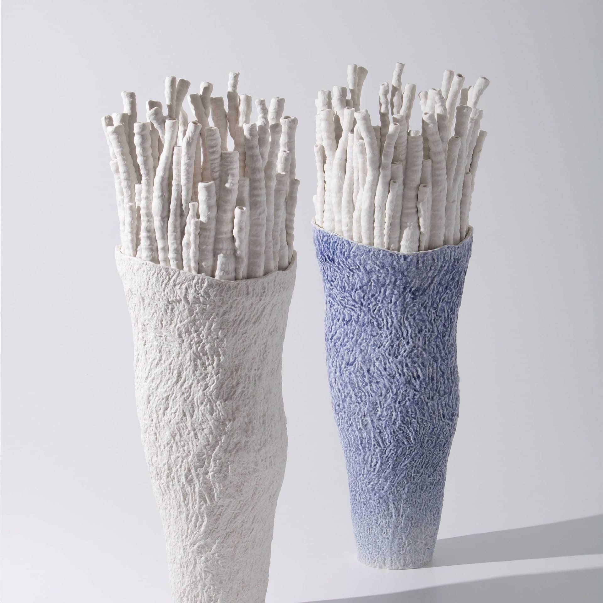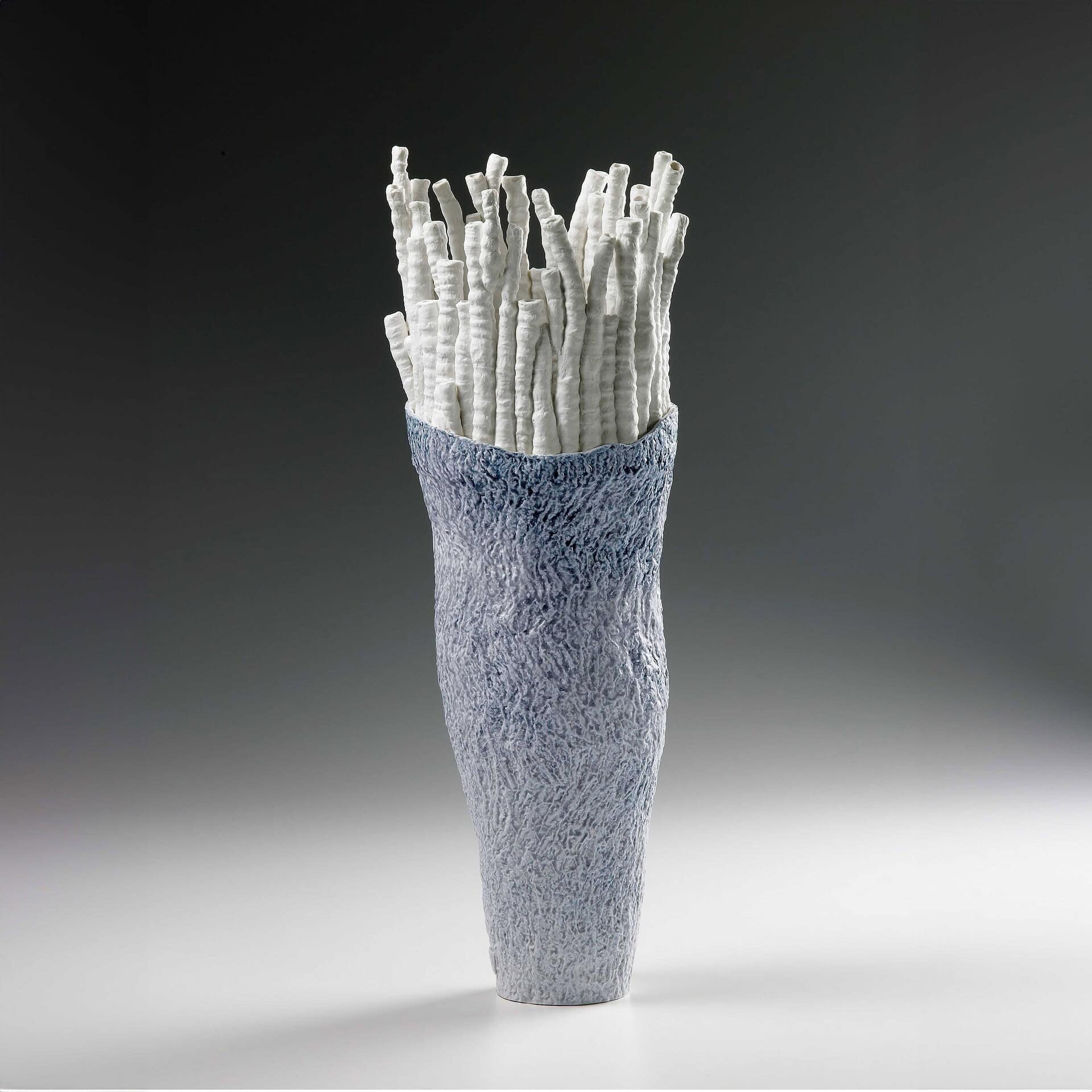 Discover the unique Akanthos Vase, where animals blend with floral elegance in biscuit porcelain, becoming vibrant centerpieces.