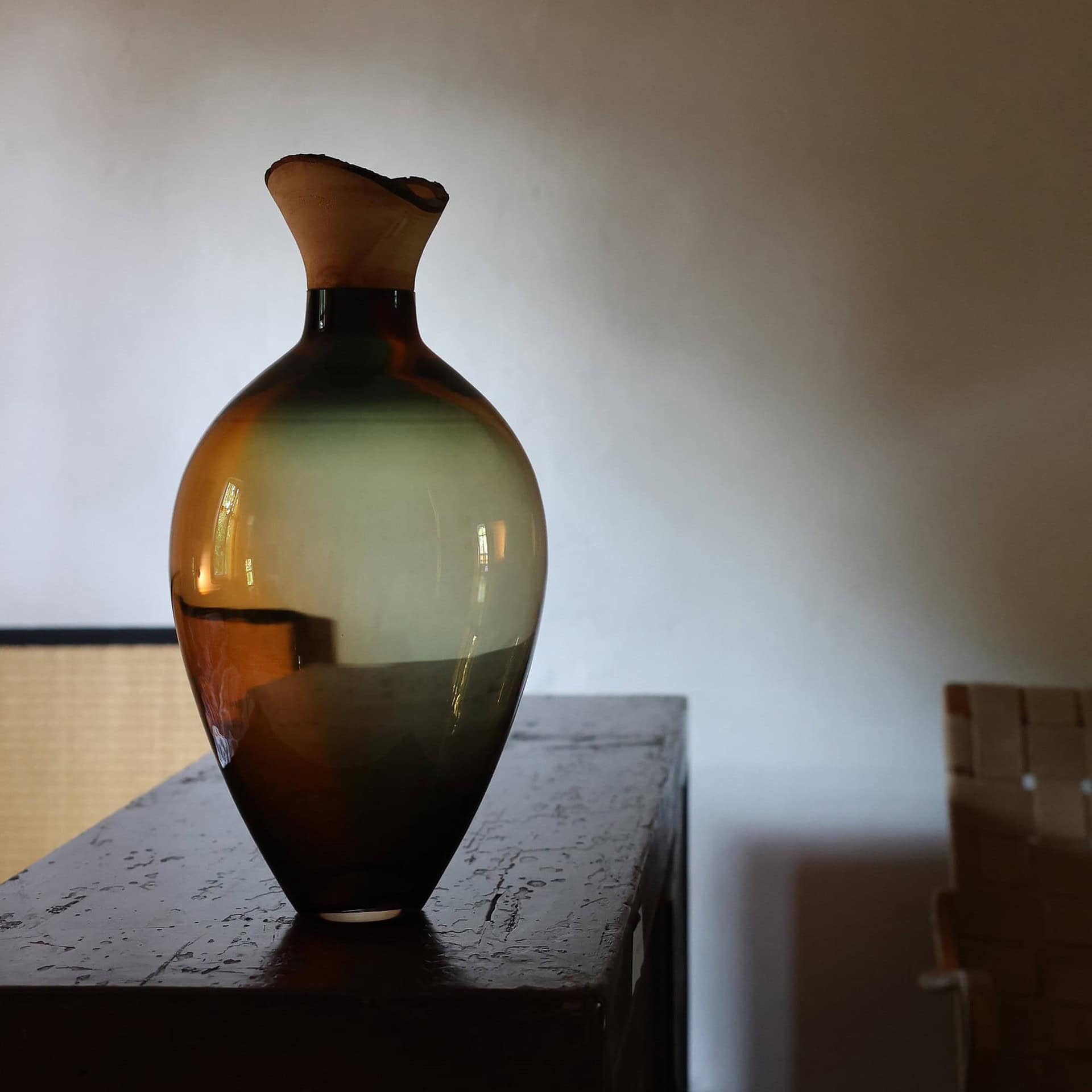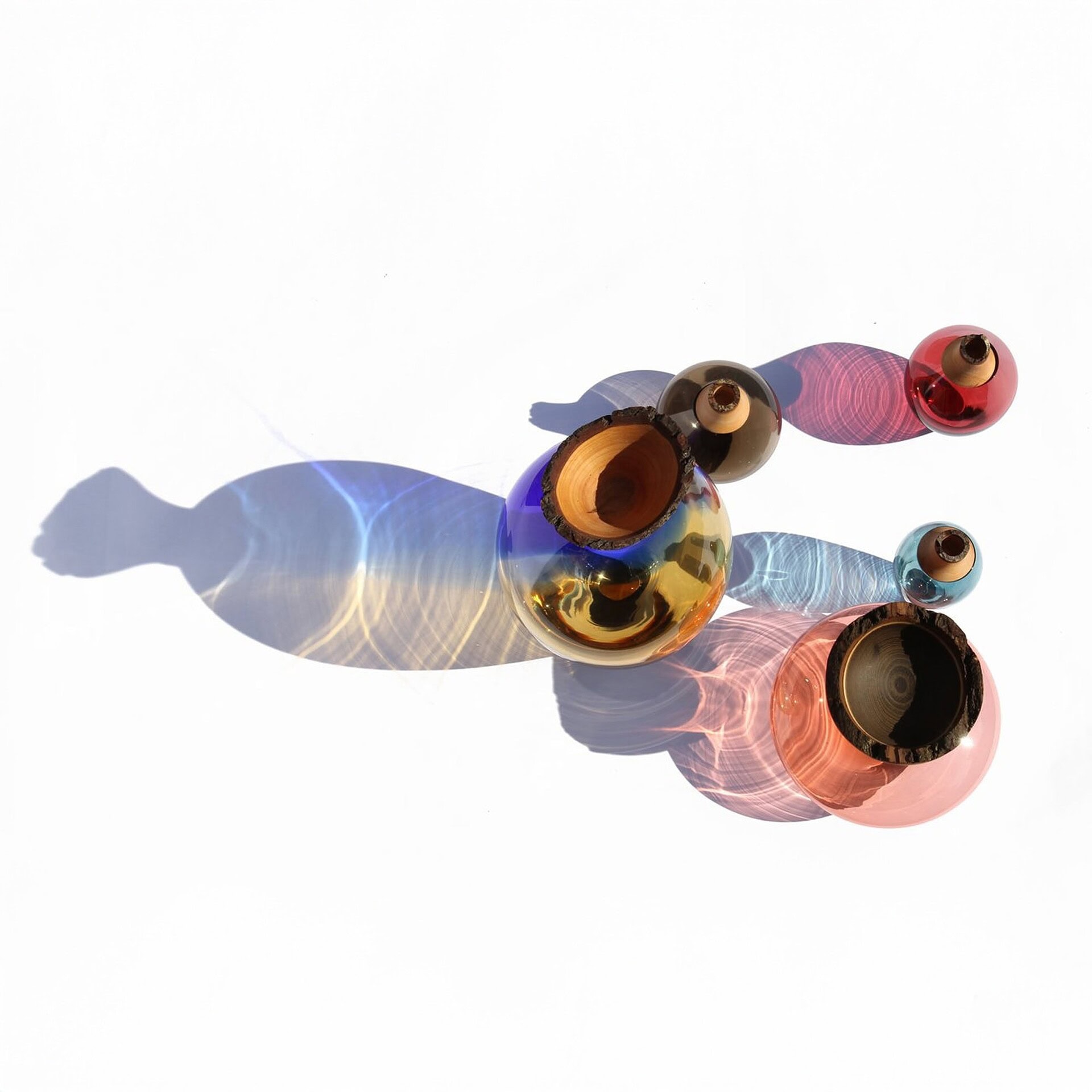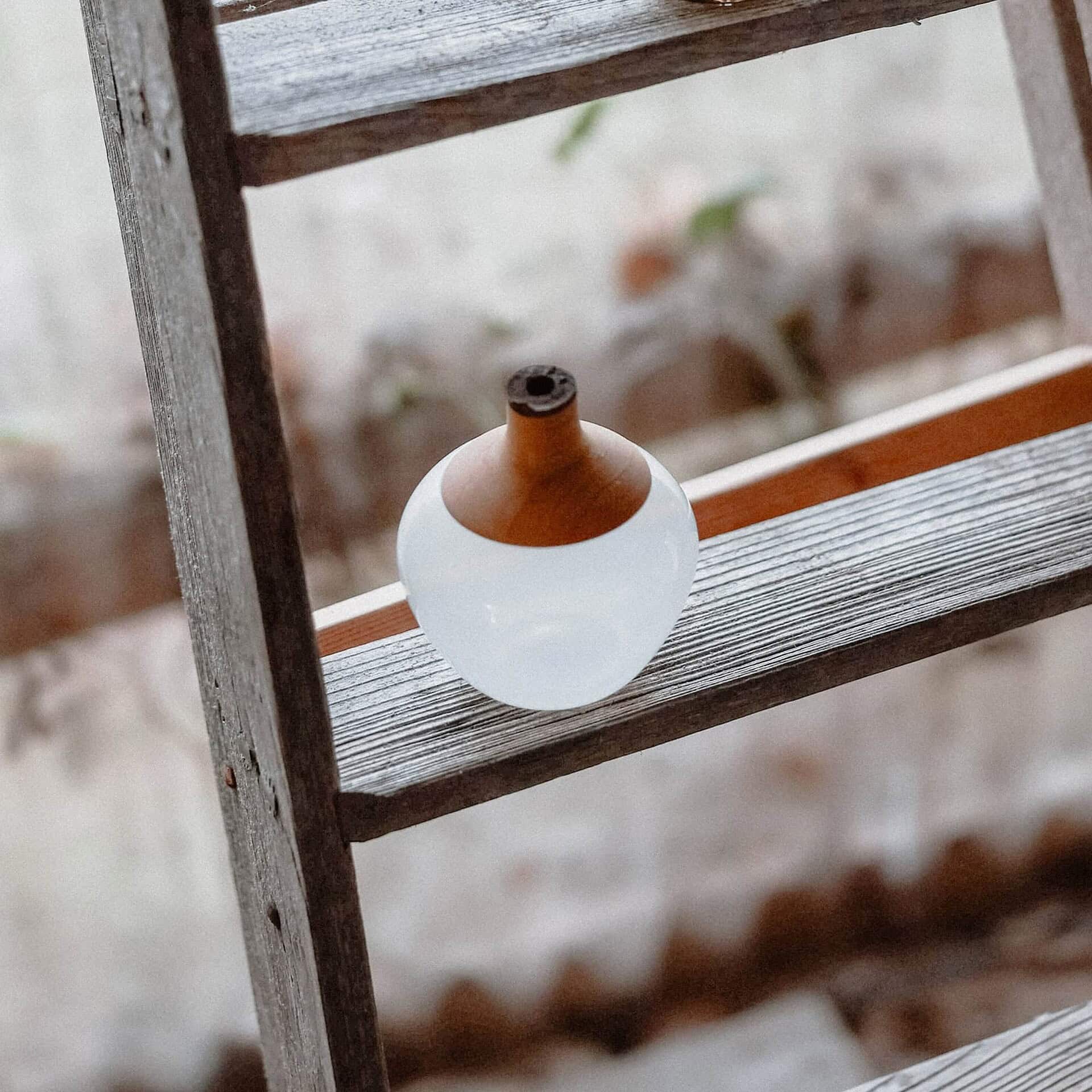Each glass component is handblown in the Czech Republic, while the wooden elements are meticulously turned in Finland and Germany, resulting in a piece that is both rooted in tradition and strikingly modern.