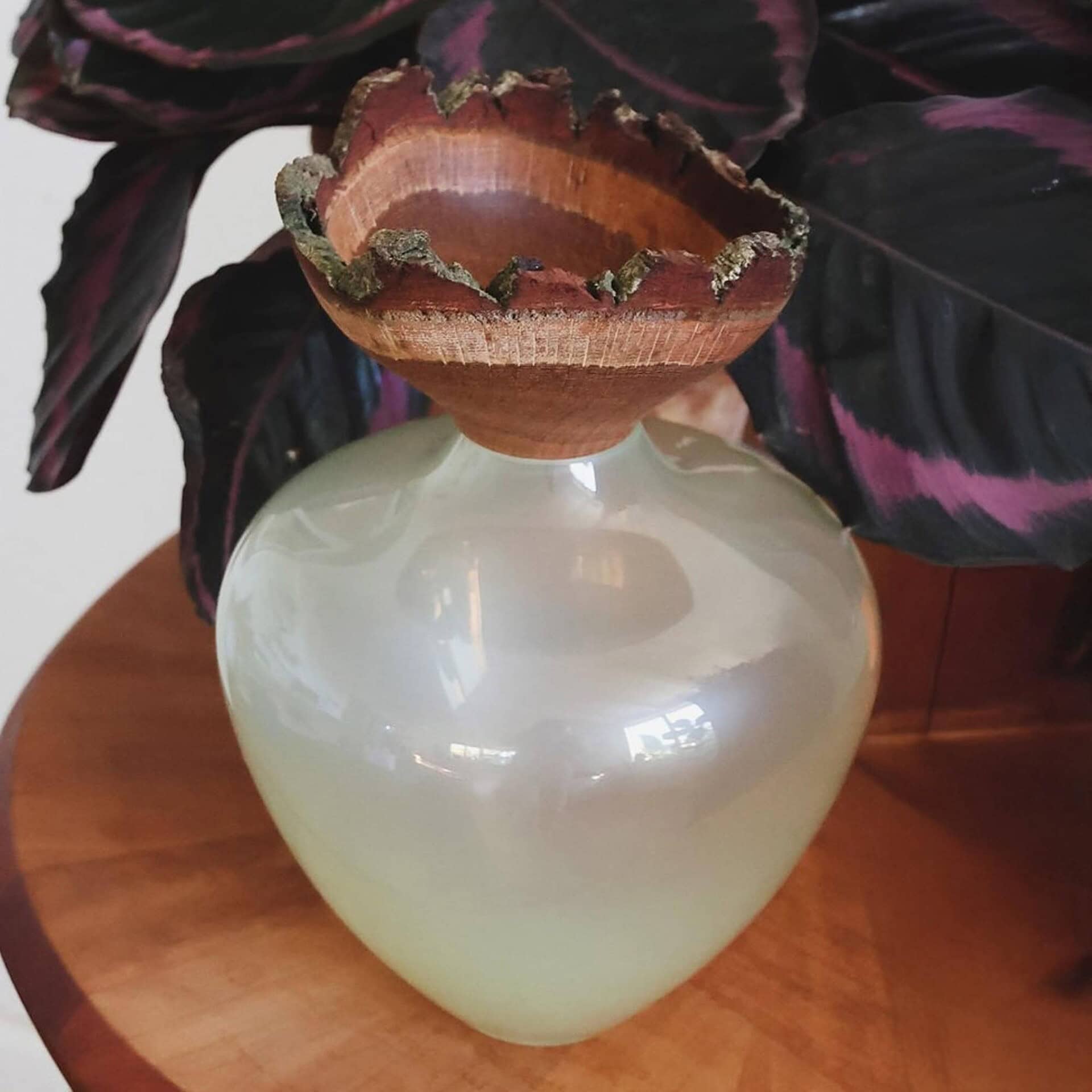 A refined fusion of natural elements, the Dual Edition Vases balance the organic warmth of hand-turned wood with the luminous clarity of handblown glass. The design’s simplicity emphasizes the individual beauty of each material, celebrating contrast in texture and tone. Crafted with precision and intention, these sculptural vessels are quiet statements—elegant enough to stand alone or anchor a composition.