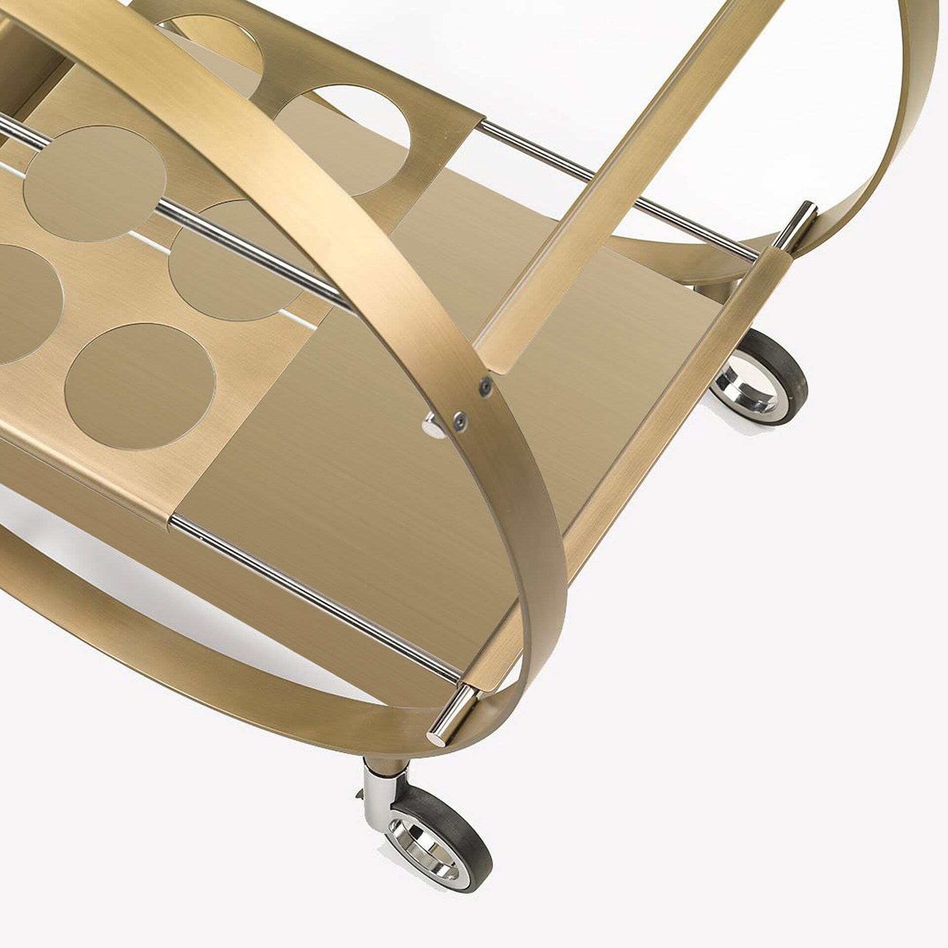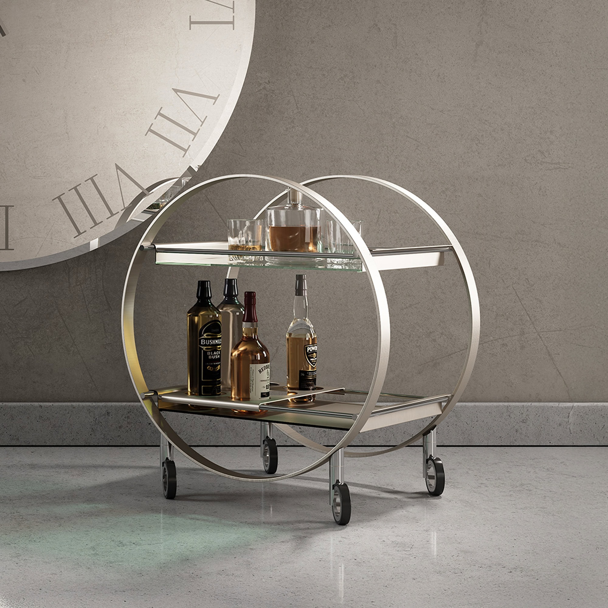 [vc_row][vc_column][vc_column_text css=""]Whether placed in a dining area, lounge, or home bar, the Miss Marple adds sophistication to any setting. Its thoughtful proportions make it easy to maneuver, while the premium finishes—like shiny steel, satin brass, or bronze—allow you to personalize the look to suit your interior. Choose the bronze mirror shelving option to introduce an added layer of visual depth and warmth.[/vc_column_text][/vc_column][/vc_row]