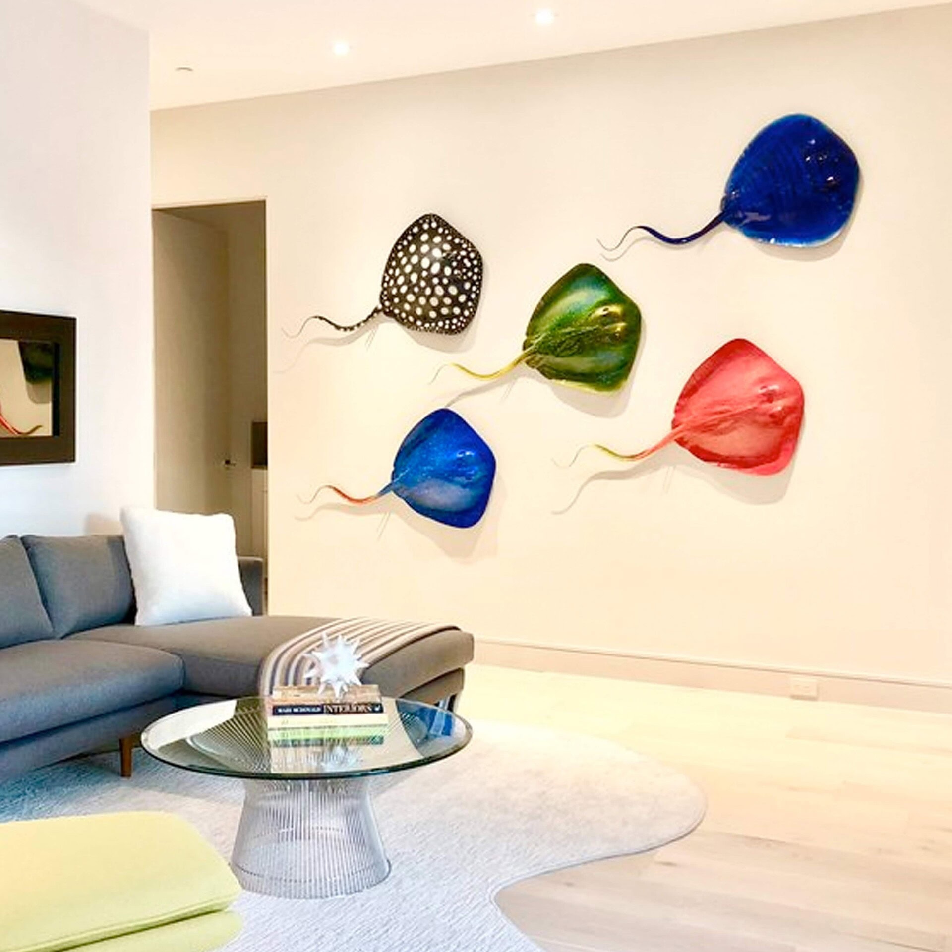 The Stingray accessory is a stunning and eye-catching piece of art. It features a vibrant, abstract composition of bold colors and intricate patterns. The wall accessory is rendered in acrylic on canvas and is sure to make a statement in any room. The painting captures the beauty and grace of sting rays in a unique and captivating way. It is a perfect addition to any modern home or office, and will be sure to be a conversation starter and a source of admiration.