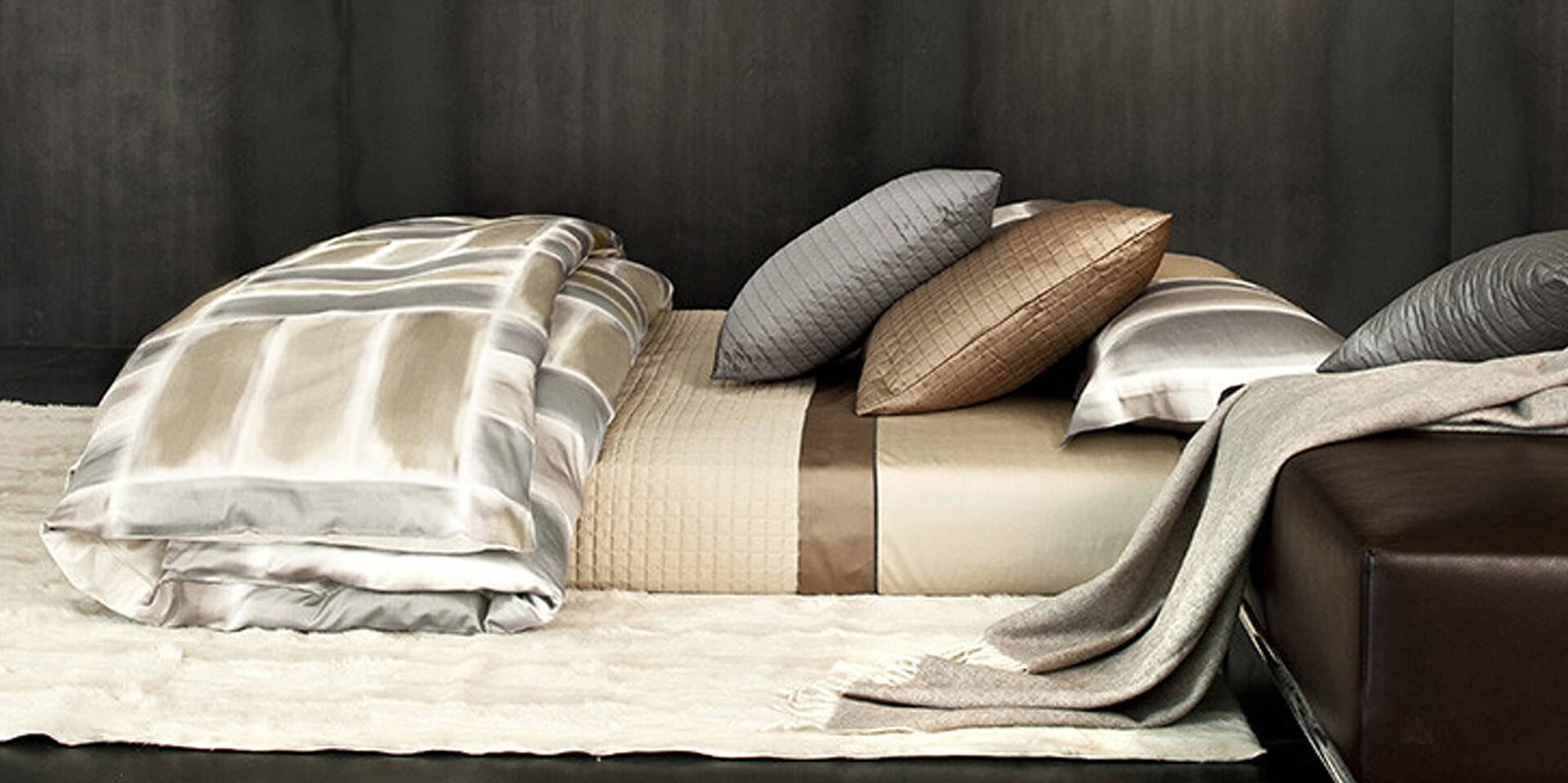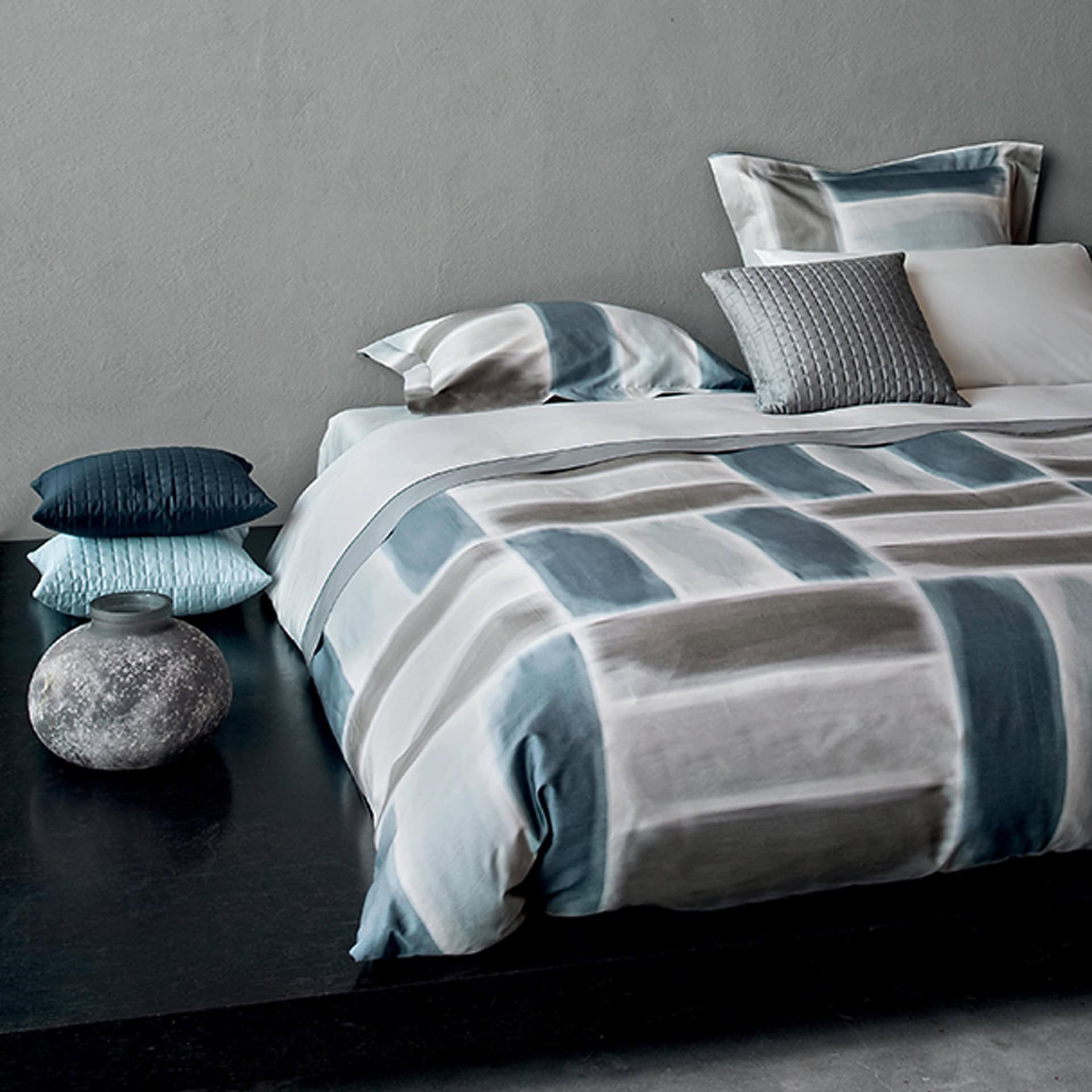 As a result, the canvas is a contemporary canvas of colors. Traditionally, the printing is performed on Egyptian cotton sateen 300 thread count. Duvet covers, flat sheets, pillowcases, bottom sheets (with or without elastic), quilted coverlets, and other items are available in any size. A simple hem or an elegant hemstitch can be applied to each product. Designed and manufactured in Italy.