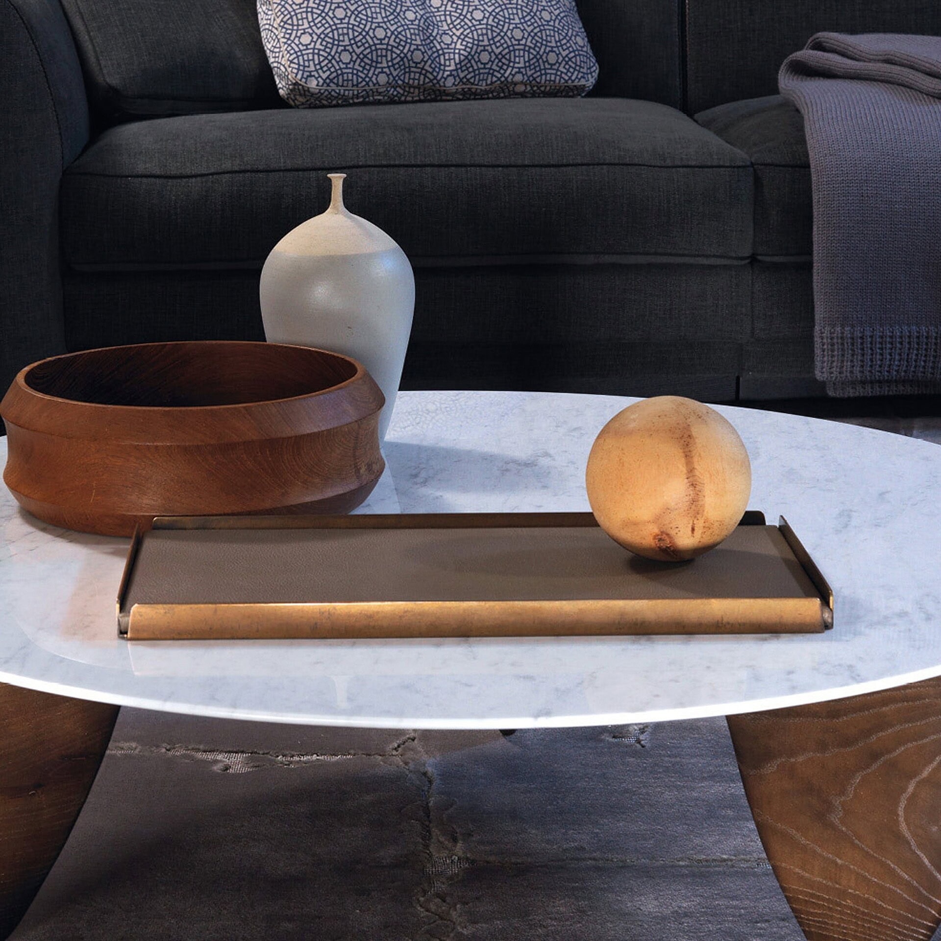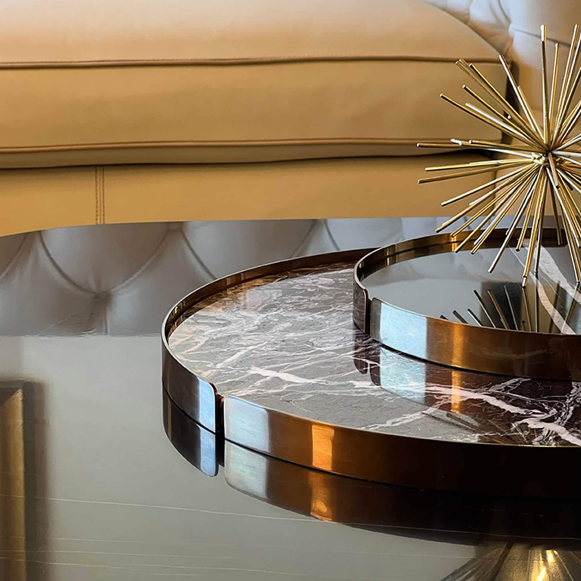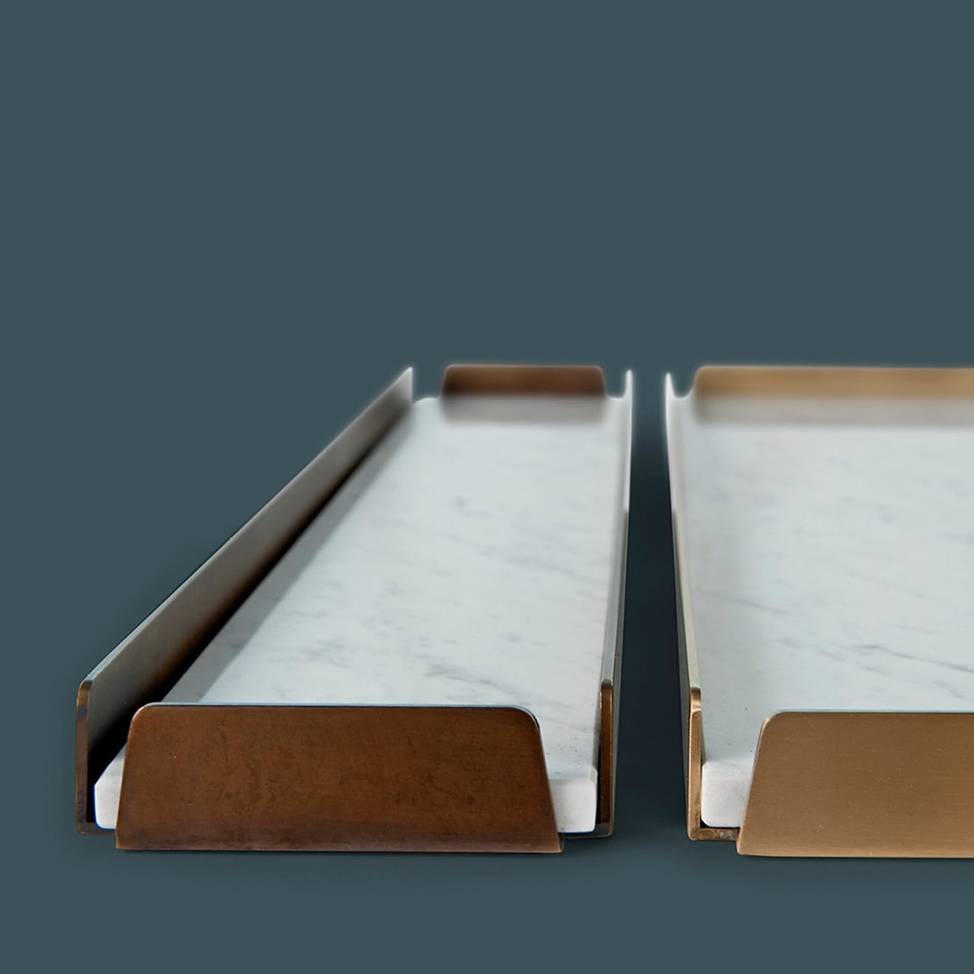 With a focus on materiality, the Hug Trays are offered in a range of exquisite combinations: from the deep veining of Sahara Noir and Emperador Dark marble to the warm patina of Burnished Bronze frames and soft, artful leathers. Their thoughtful proportions and rich surfaces bring a touch of Italian craftsmanship to everyday rituals. Available in multiple sizes, each piece can stand alone or be grouped for an elevated, curated aesthetic.