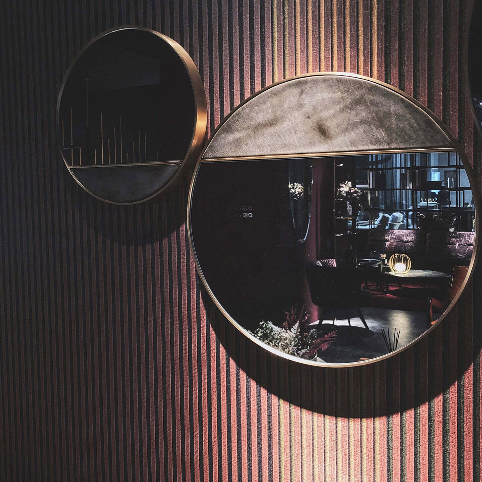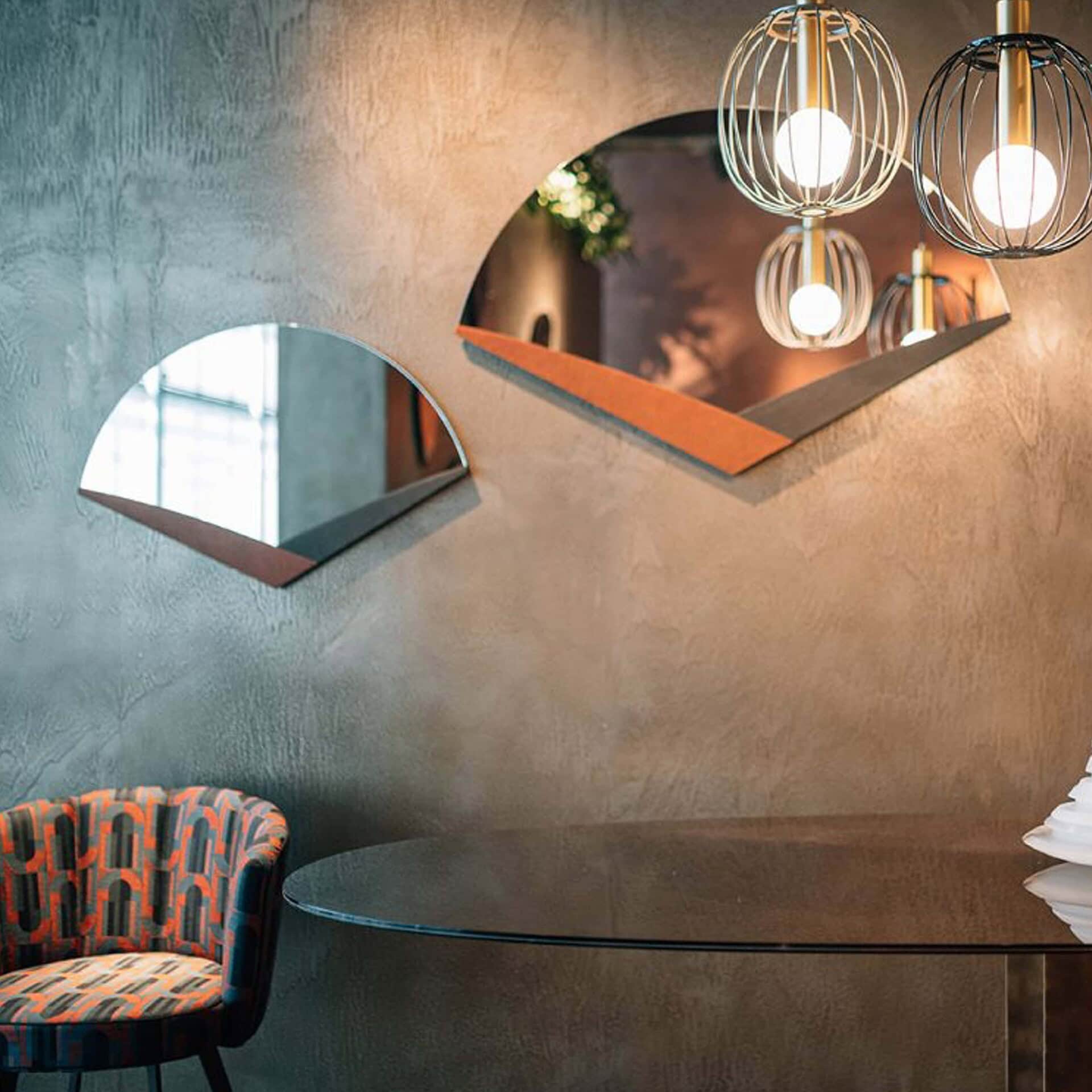 This unique mirror is inspired by the beauty and elegance of two different cultures: Japan and Argentina. With its intricate design, you can choose between a fan or palm tree design to match your personal taste. The structure of the Kimi mirror is made from high-quality lacquered wood, ensuring durability and longevity. This is combined with a beautiful decoration made from single or two-tone leather that adds a touch of elegance and sophistication to the mirror.