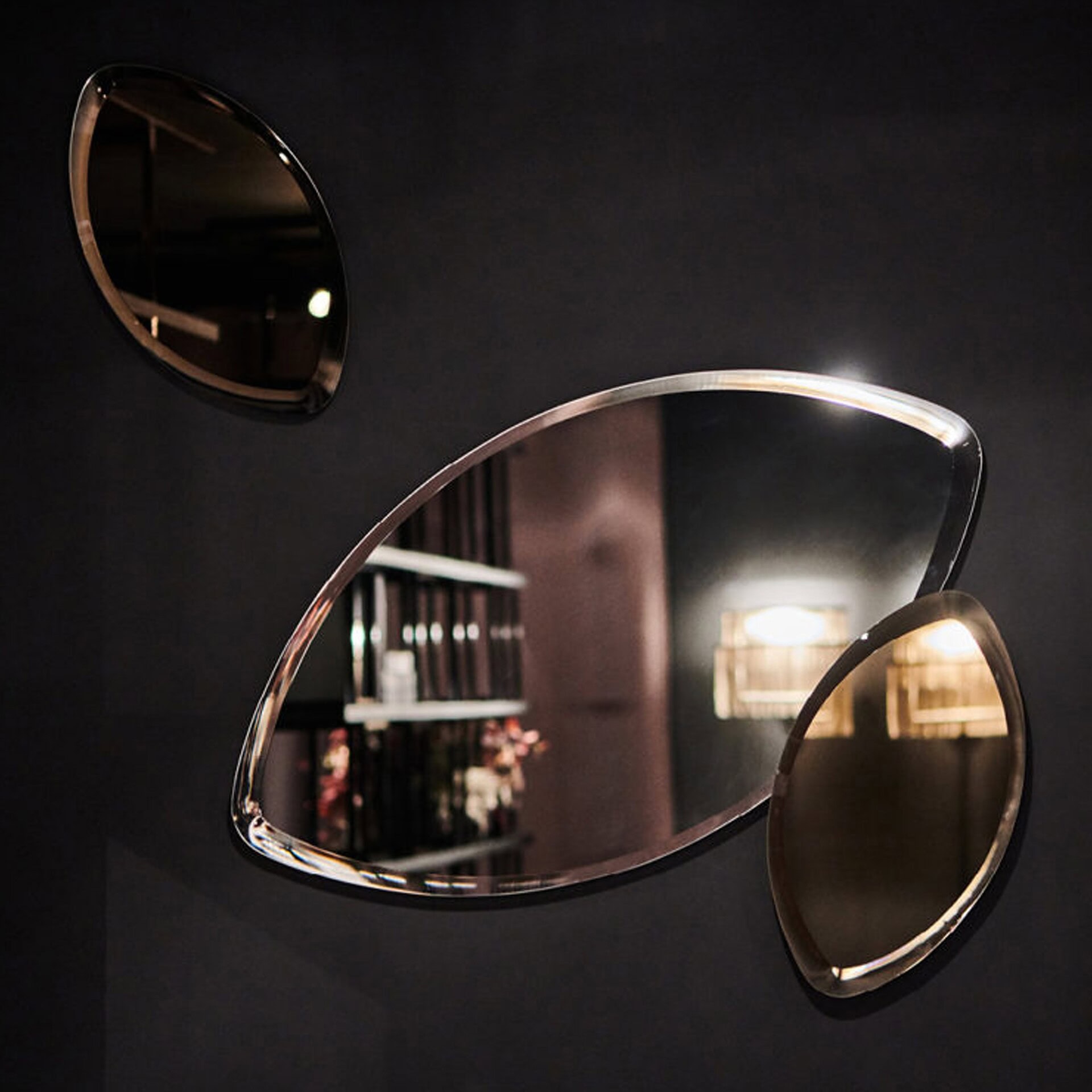 The Marquise Mirrors feature an oval shape with pointed ends, creating a visual composition that goes beyond the intrinsic function of the traditional mirror. The bevelling details and possible color differences in the mirrors complete the composition, granting it an unparalleled elegance. The beauty of these mirrors is not just limited to their shape and composition. Each mirror in the Marquise series is crafted with the utmost attention to detail, ensuring a flawless finish that is both functional and beautiful.