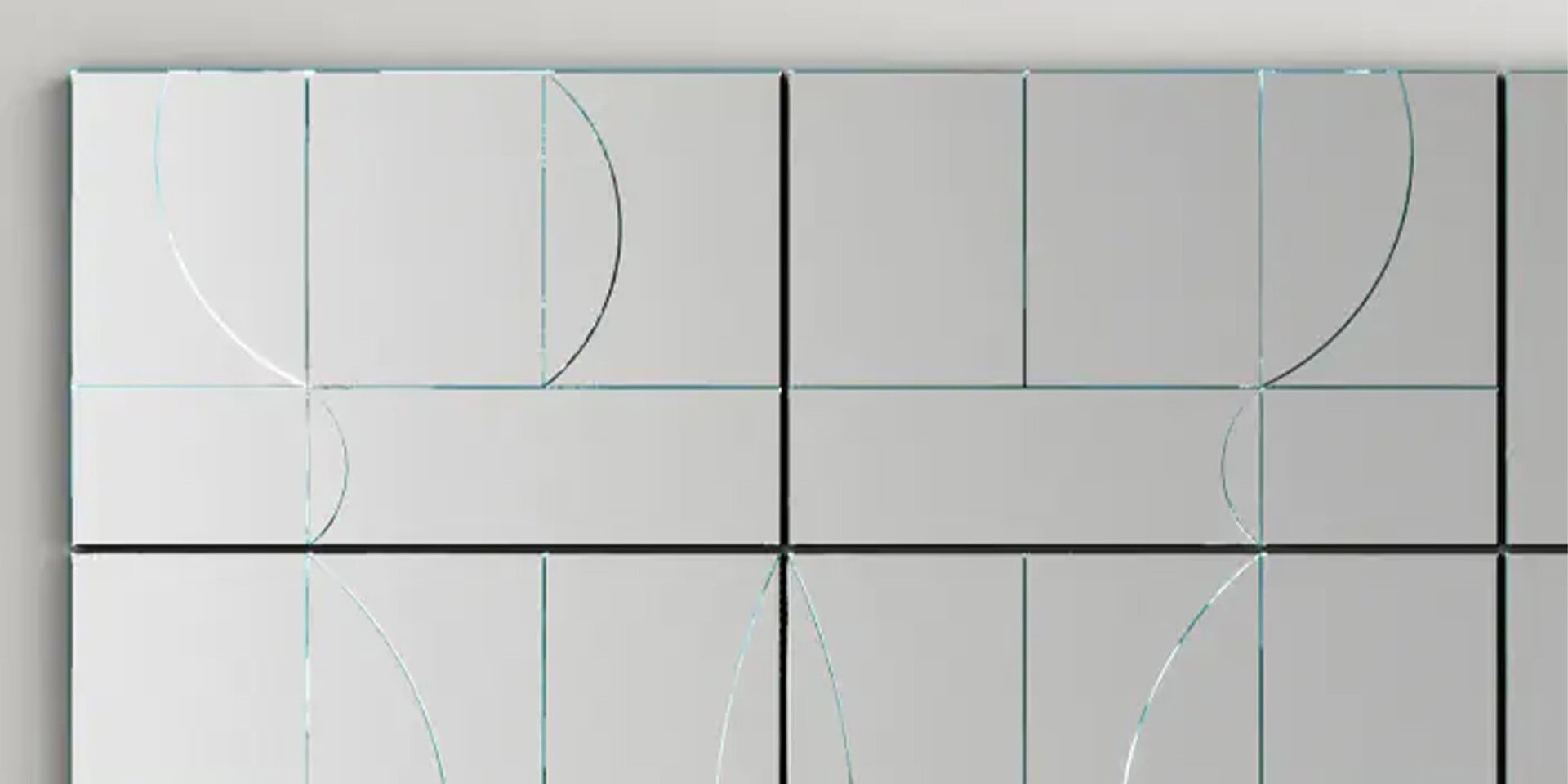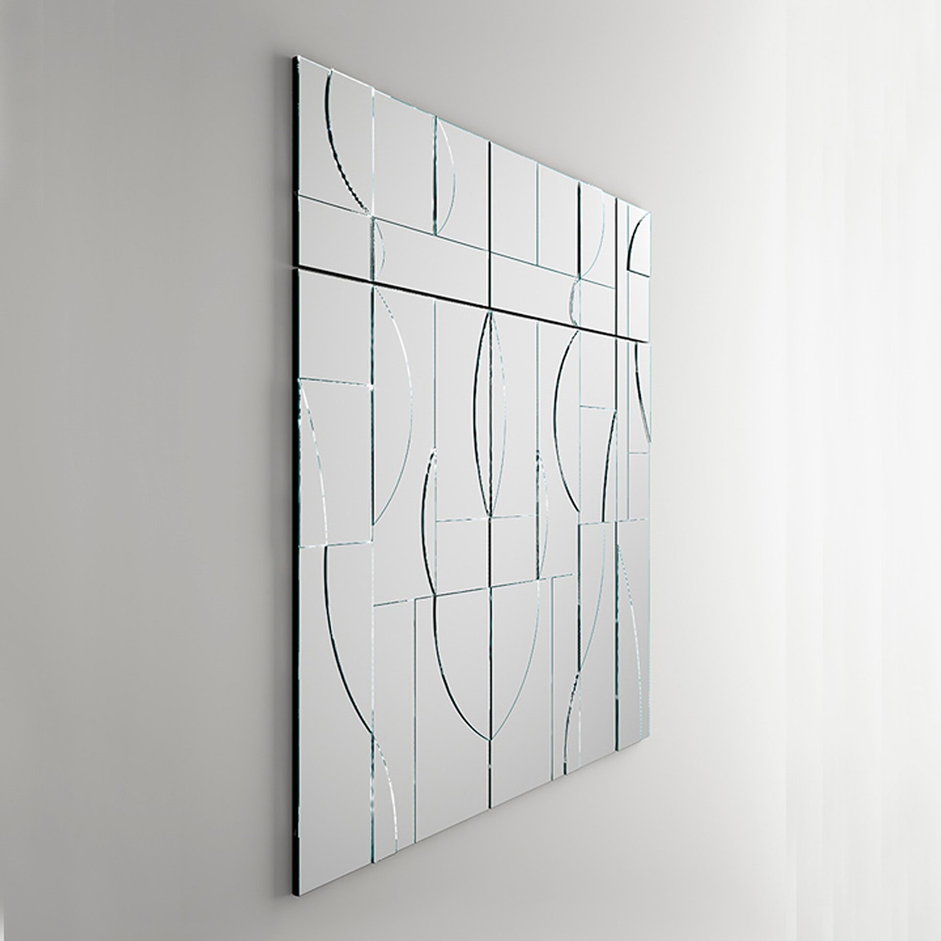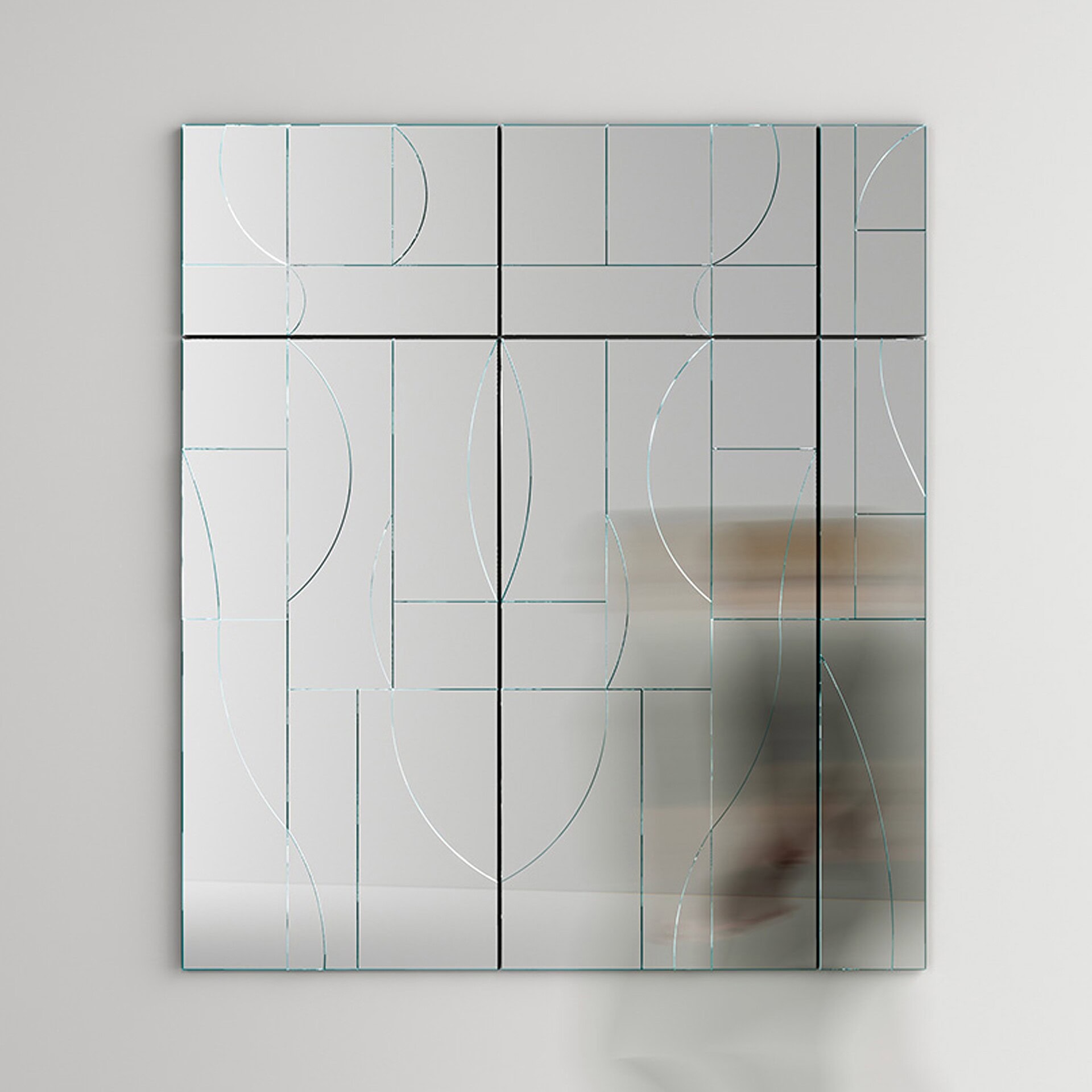This mirror comes in six pieces with two versions of each piece and is intended to be arranged around in different compositions to form an eye-catching decor element. When placed on a wall, it mimics a piece out of a museum; in reality, it harbors qualities that are just as beautiful but also functional because of its reflective quality that makes checking your appearance easy. Finishes include smoked, bronze, and gold glass for added aesthetic, as well as a standard glass finish.