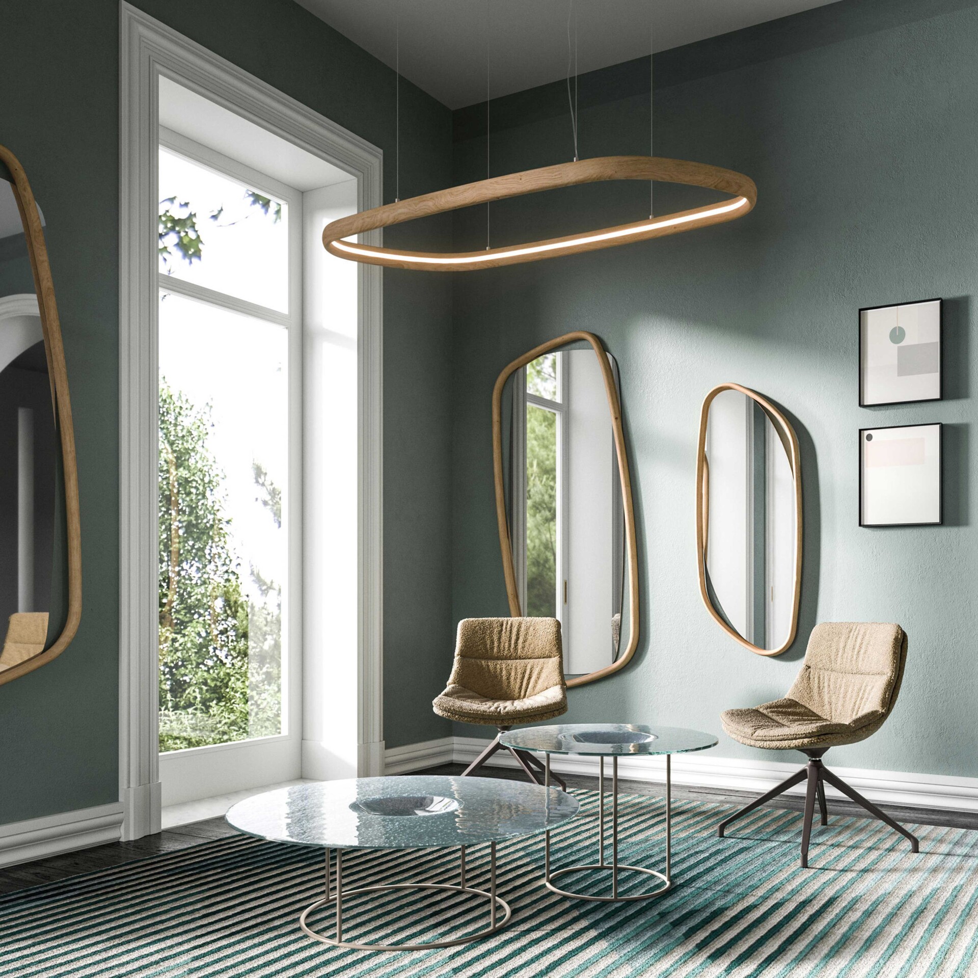 Embrace elegance with the Monza Mirror, featuring a whimsically inclined oval design encased in an expanding, luxurious wooden frame.