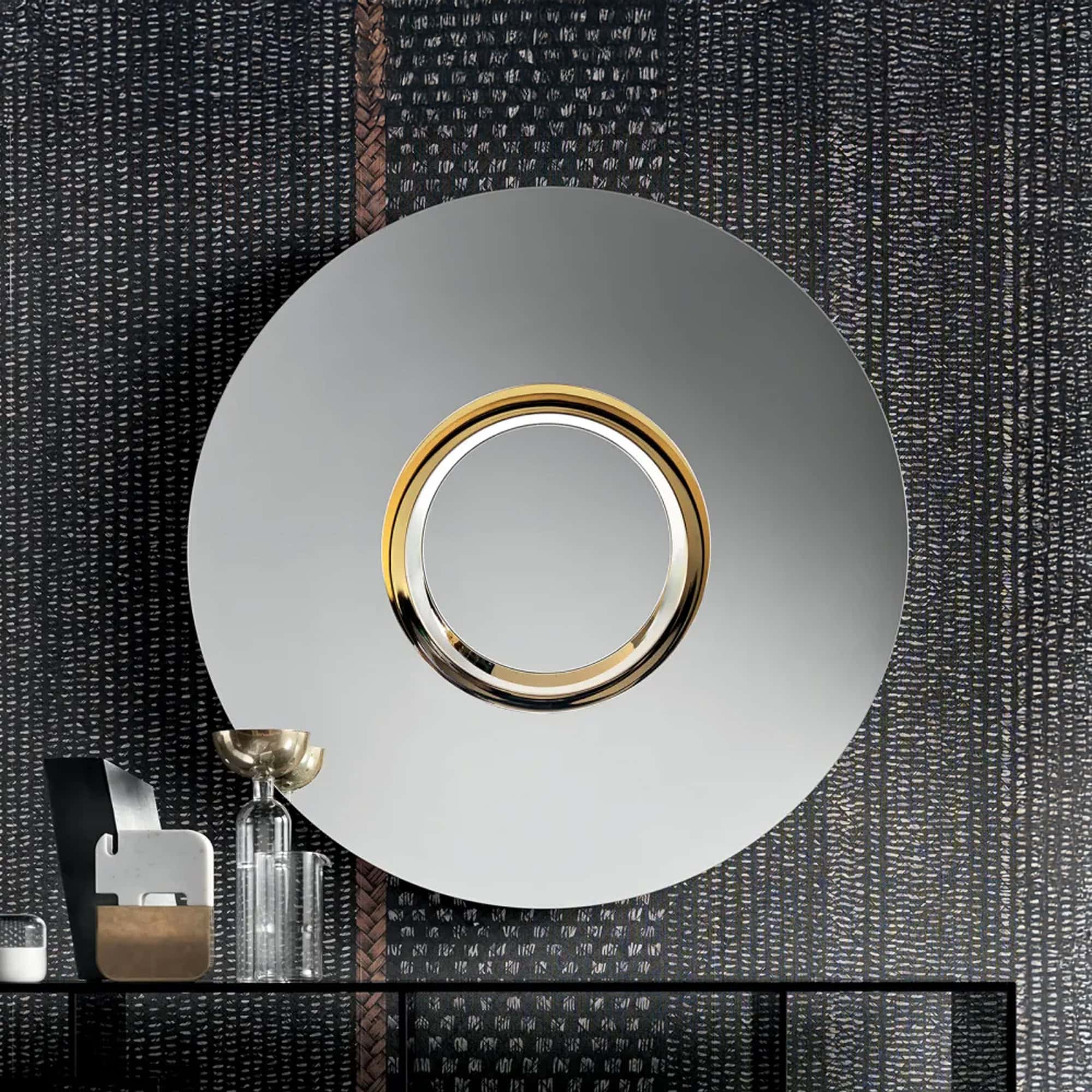 Mirror with gold-finish central disk