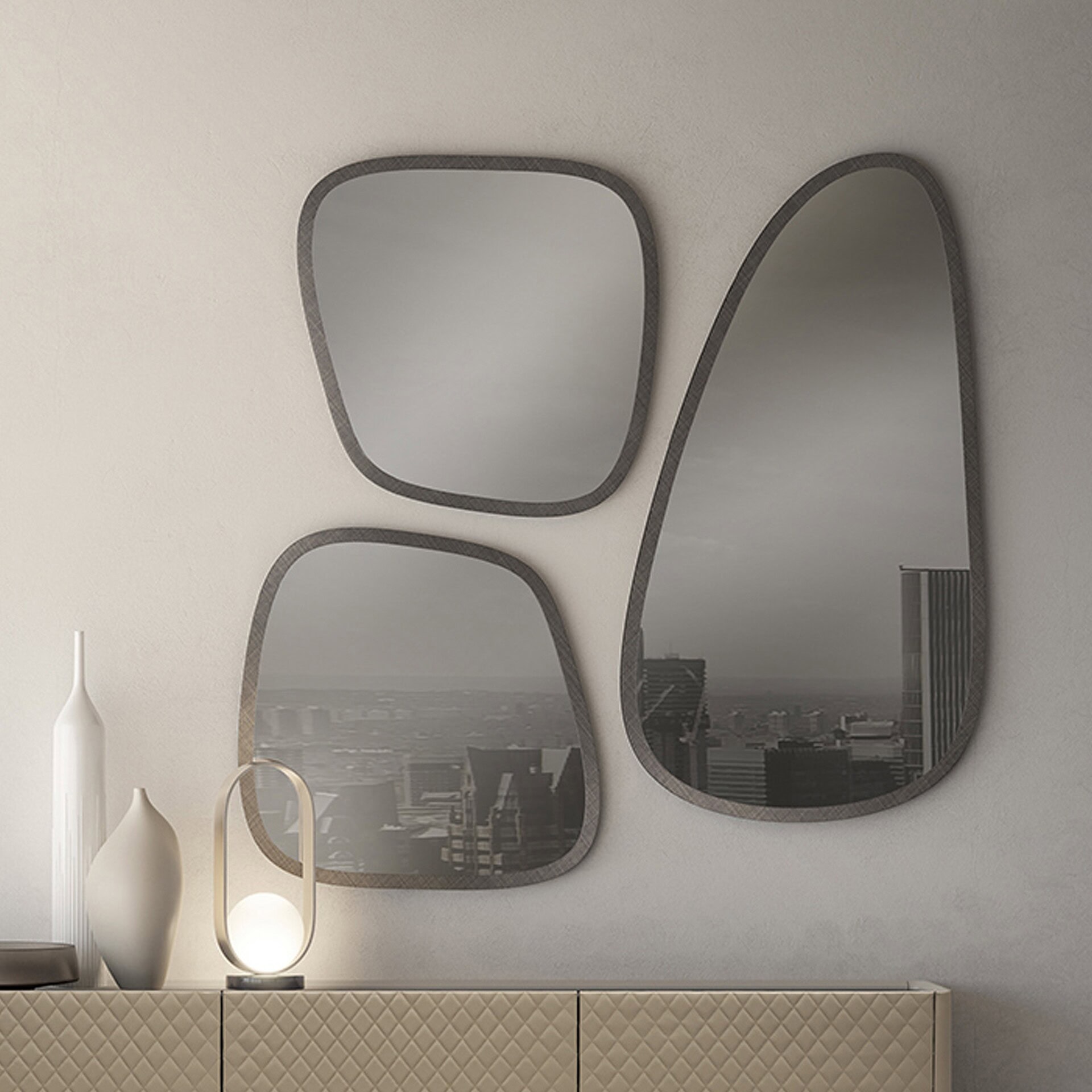 Handcrafted in Italy by Studio GBS, each Rolli Mirror carries subtle variations that make it entirely unique. Available as a wall-mounted or floor-standing mirror, its smoked mirrored glass and bold vertical orientation enhance both scale and drama. More than a mirror, Rolli serves as an architectural element that elevates modern living spaces.