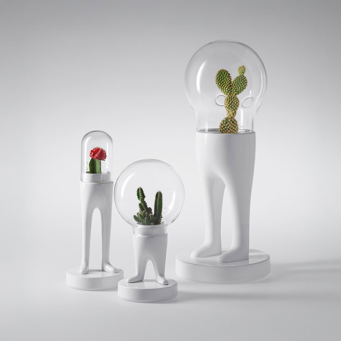 Quirky, whimsical, and full of soul, the Domsai Sculpture brings a fresh perspective to the world of tabletop design objects. Created by Matteo Cibic, this "pet greenhouse" is more than a simple plant holder—it’s a playful character meant to enliven your workspace or home. With its anthropomorphic base and glass dome head, Domsai acts as a tiny botanical companion, serving both as a decorative sculpture and a micro-world for your favorite small plant.