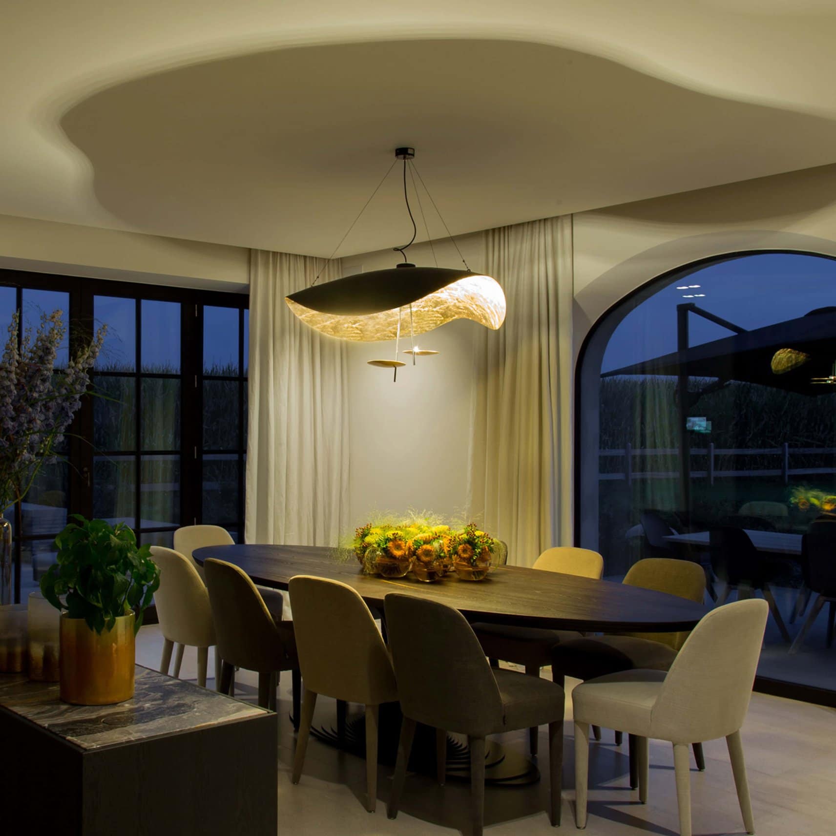 The Lederam Manta S2 Lamp is classic and curvy, creating a soft focus between lighting and modernism in a beautiful way.