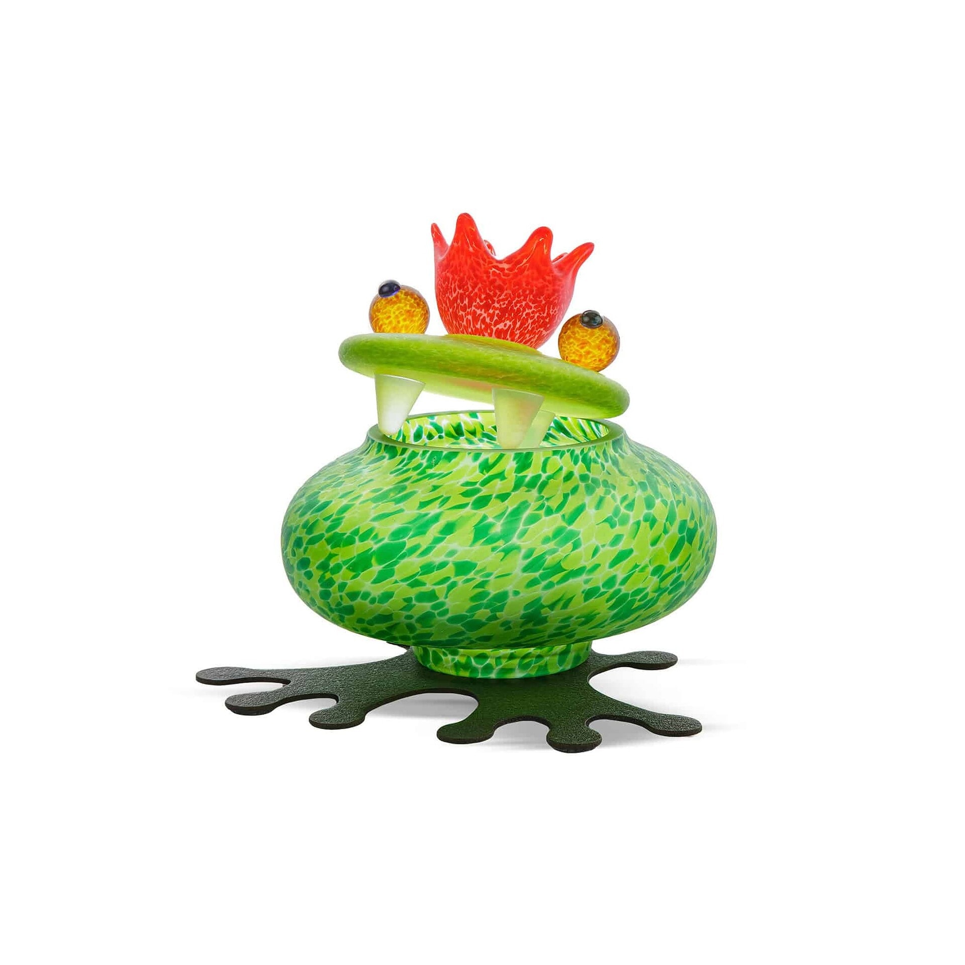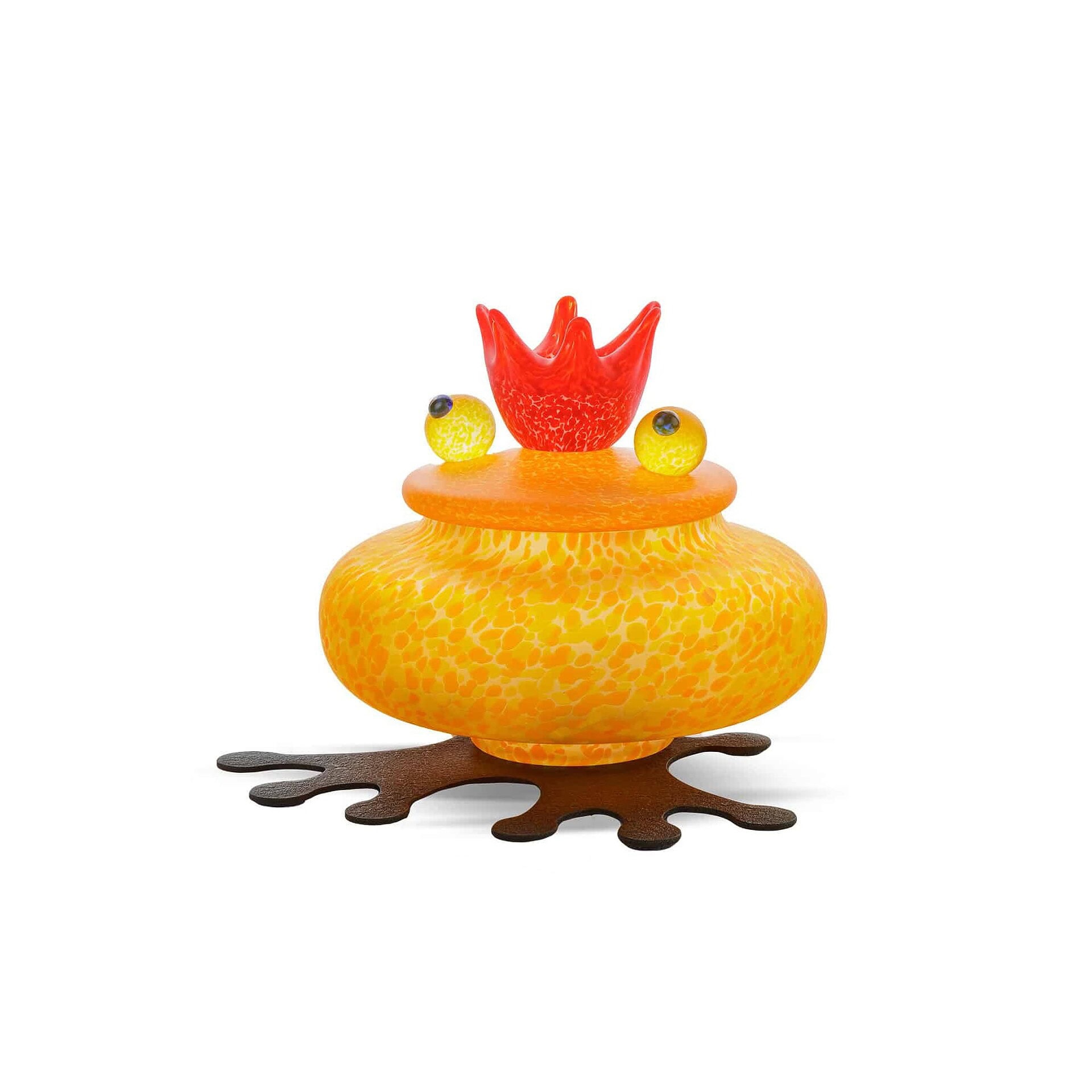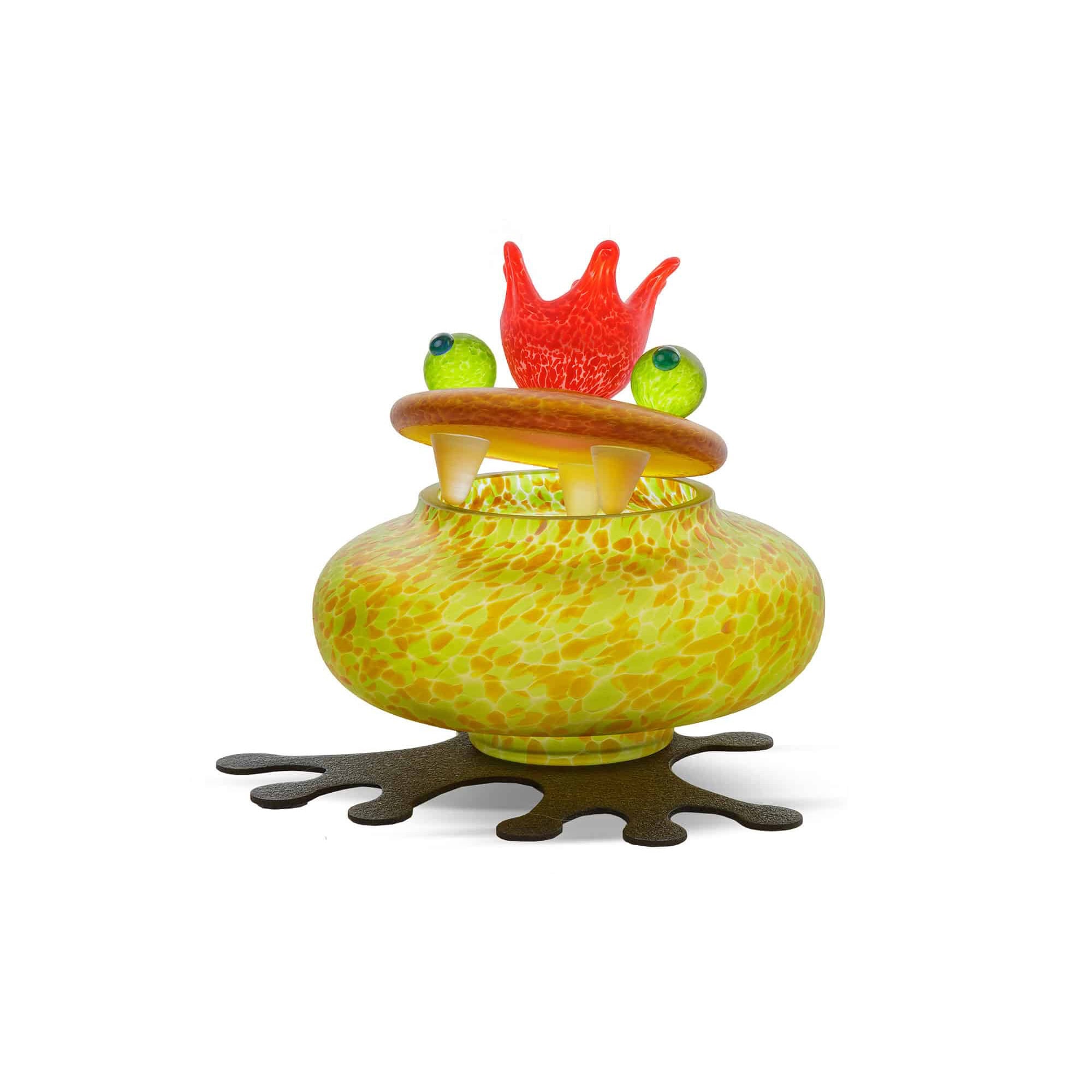 Whimsical yet refined, the Boxy Frog Glass Box brings a delightful sense of humor to everyday storage. With its spotted green body, expressive orange crown, and curious googly eyes, this sculptural piece is more than a conversation starter—it’s a handcrafted work of art. Whether placed on a vanity, shelf, or console, it offers a playful way to store jewelry, trinkets, or other treasured items, making it a joyful addition to any space.