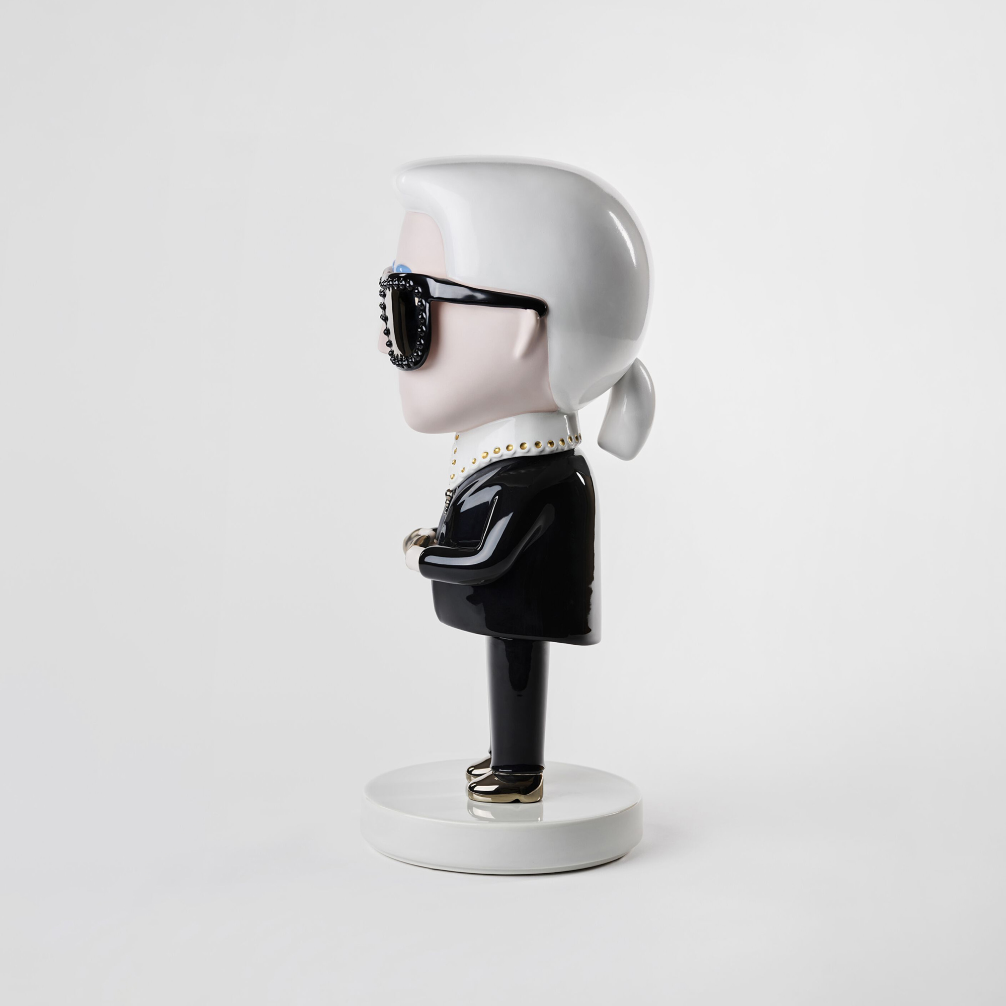 Bold, refined, and unmistakably iconic, the Karl Lagerfeld Rock Art Ceramic Sculpture offers a striking interpretation of one of fashion’s most influential figures. Part of the Karl Lagerfeld × Bosa collection, this sculptural piece translates Lagerfeld’s legendary presence into a contemporary ceramic artwork that feels both timeless and expressive. The form captures his instantly recognizable silhouette, transforming personal style into an object of lasting artistic significance.