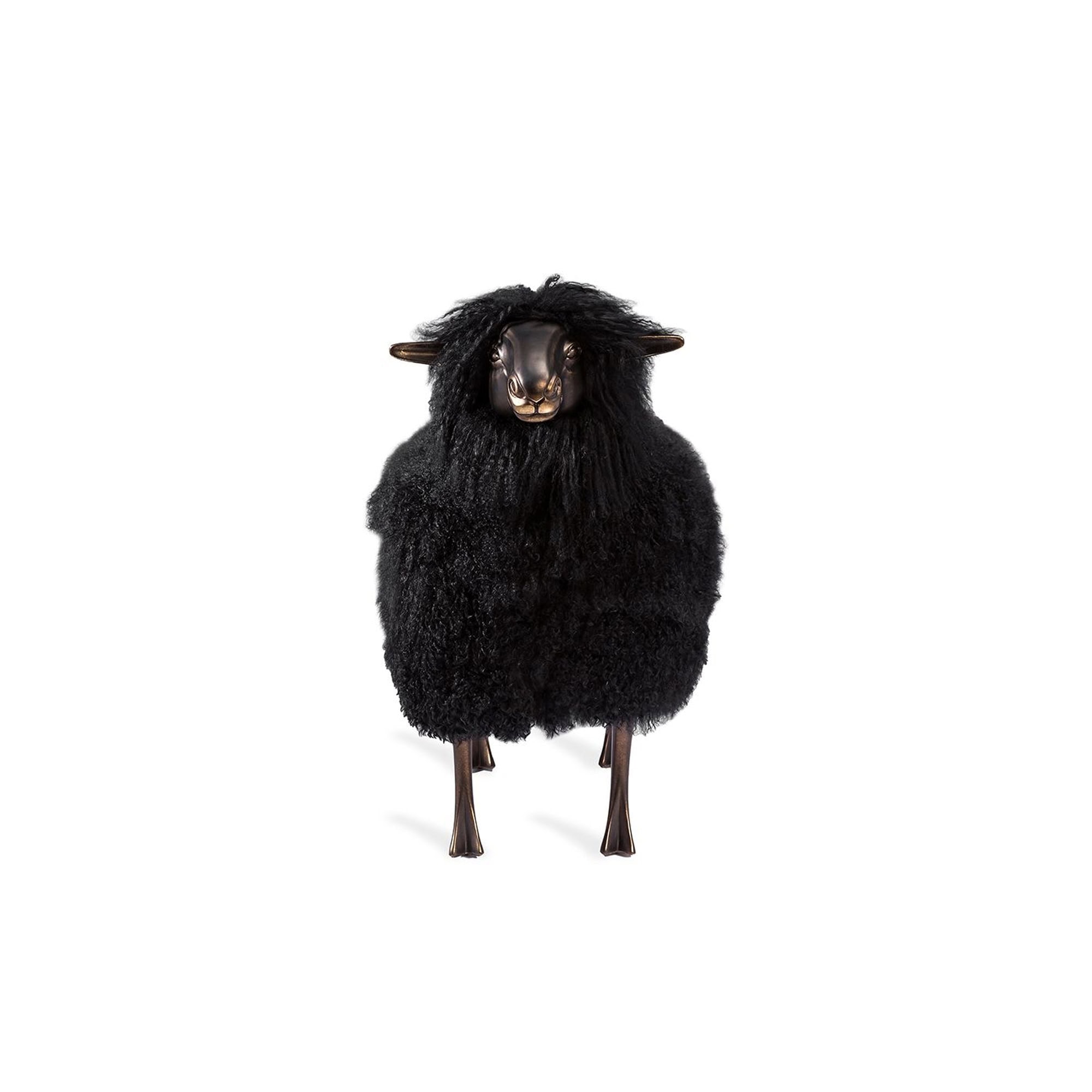 The Leon Sheep Statue Black Sheepskin adds bold personality and sculptural charm to any space. Cloaked in rich black sheepskin with antique bronze detailing, this whimsical yet refined accent makes an unforgettable statement. Its lifelike form and luxurious texture invite conversation while offering an artistic touch that balances playfulness with sophistication.