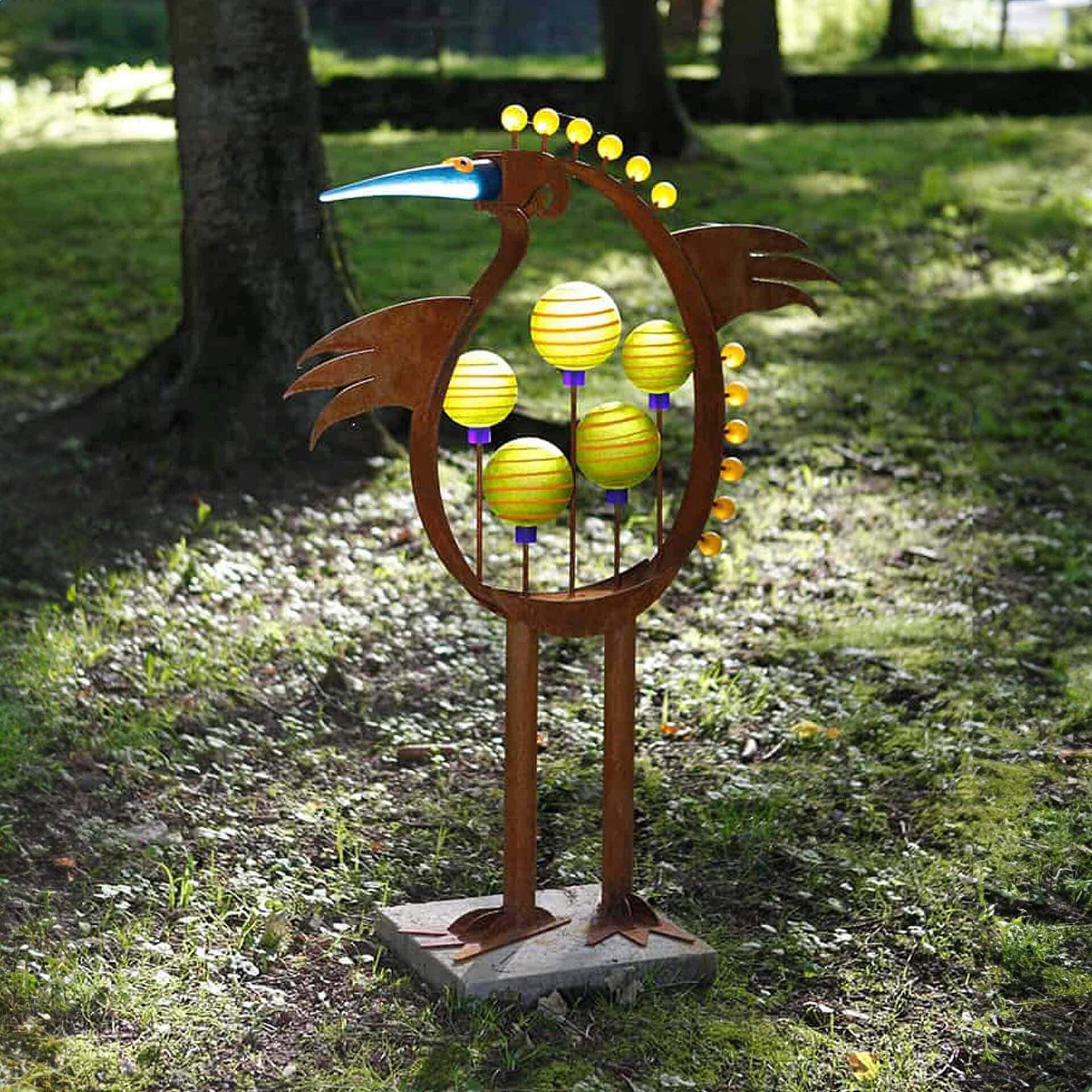 The Lucky Bird glass garden statue from Borowski, whose hand-blown glass art pieces are coveted worldwide for their mastery, quality and creativity.