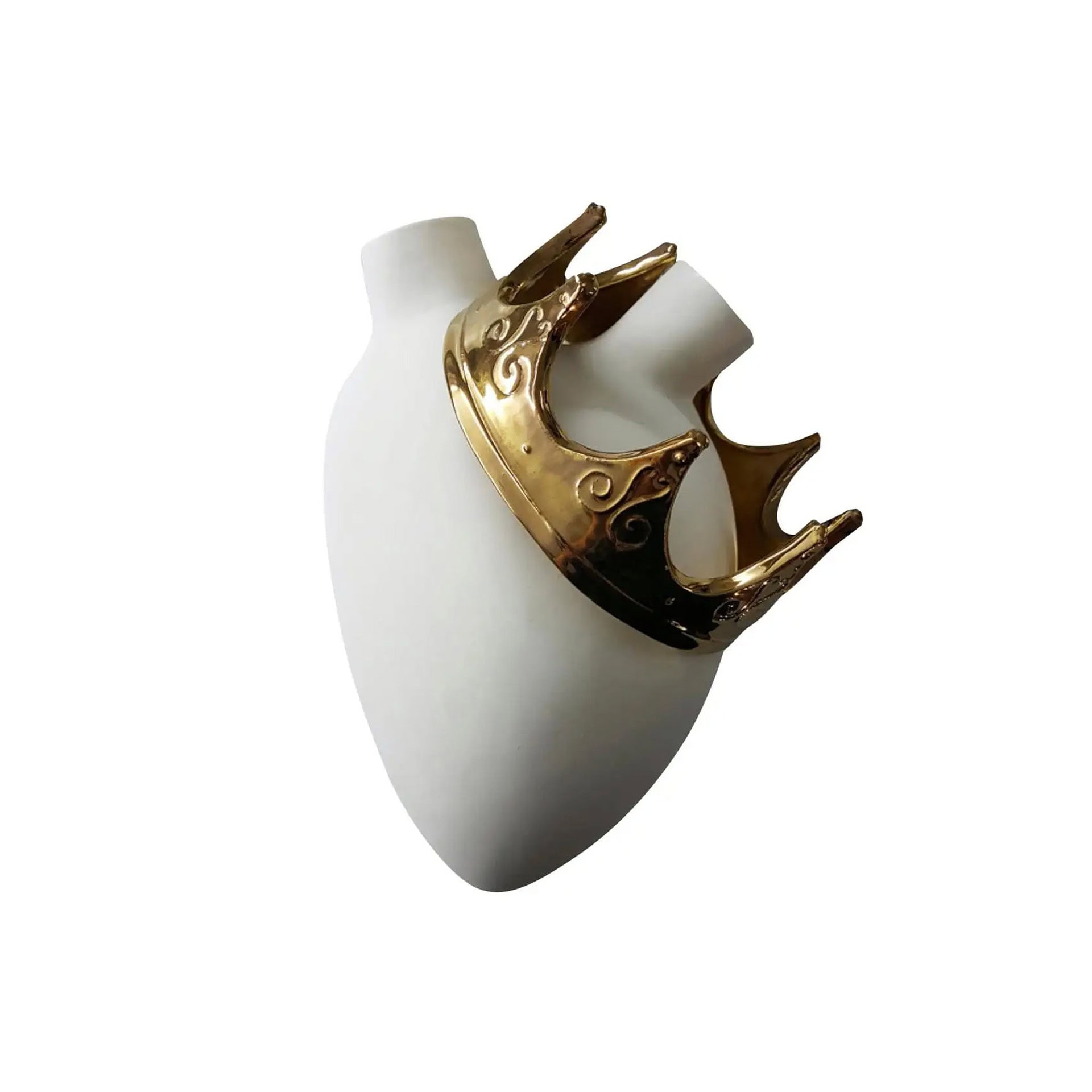 Crafted from fine biscuit porcelain and adorned with hand-applied gold leaf, the Majestic Porcelain Heart Vase showcases a matte surface contrasted by lustrous metallic detail. Each piece is handmade in Italy, emphasizing artisanal quality and refined techniques.