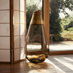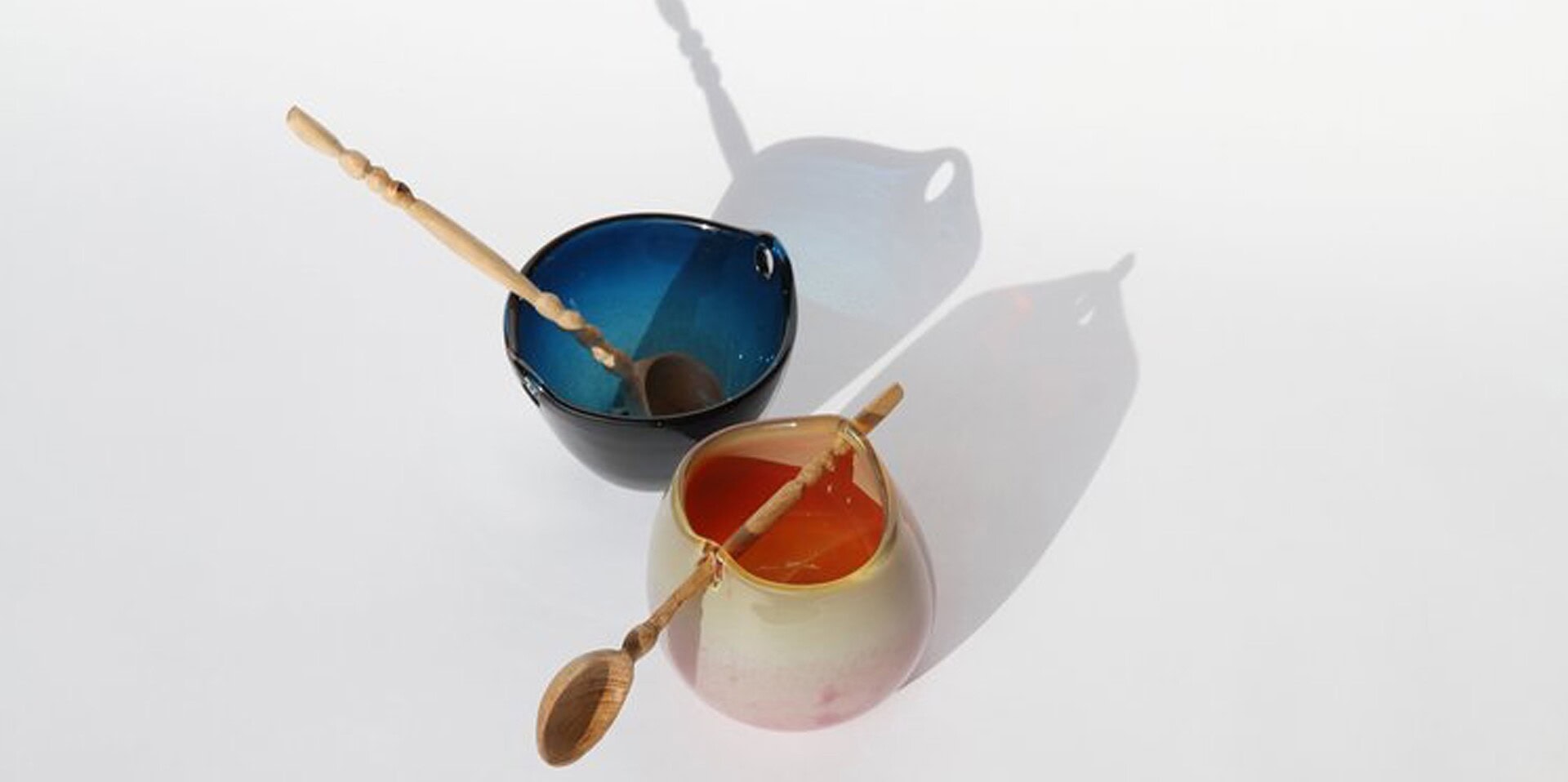 The Heiki Bowl by Utopia and Utility is not your ordinary bowl, the simplicity of Heiki is compelling and striking. The glass is freehand blown, making it soft and fluid. As an accompaniment to each bowl, there is a hand carved wooden spoon that can easily be slid out for serving or used as a handle.