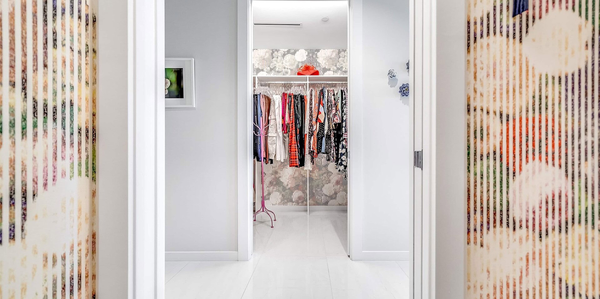 Transform any room into a stunning art gallery with the Bruxelles Wallpaper. This modern design combines nature and geometric patterns, creating a one-of-a-kind finish. Intricate flowers beneath a striking vertical striped design add a touch of style, making it perfect for any contemporary home.