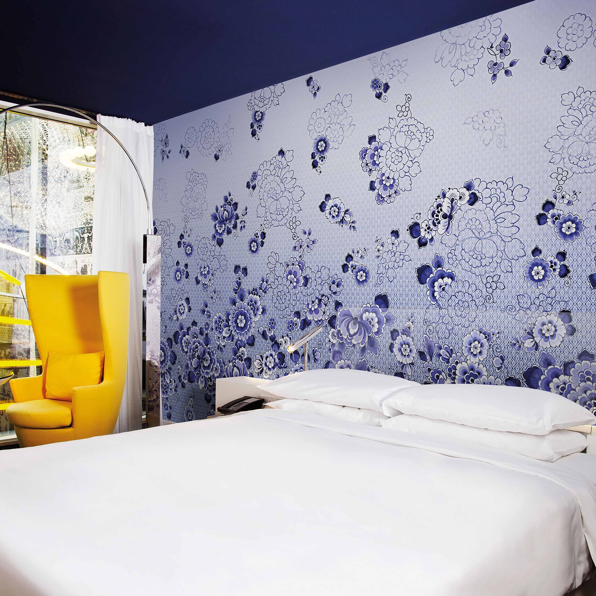 A reinterpretation of Delft Blue porcelain, famous worldwide for its exquisitely hand-painted blue decorations on a white background, London Art's Delft Wallpaper embodies its charm and elegance. The different shades of blue add a unique depth to the delicate floral motifs. The timeless wallpaper is perfect for a classic room or a contemporary home.