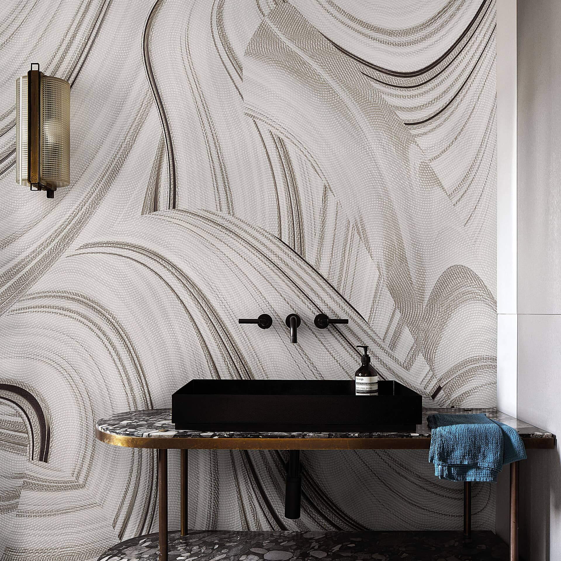 The Groovy Wallpaper by London Art plays off of the classic disco area from the 70s, which is recreated with the rhythm of Donna Summer, by Abba, in a functional key, using all-natural colors, with an abstracted presentation of the 70s. The fluidity of this print makes for a fun atmosphere within any space it's placed in, while providing just the right touch of elevated modernism with its minimal approach to capturing an iconic era.
