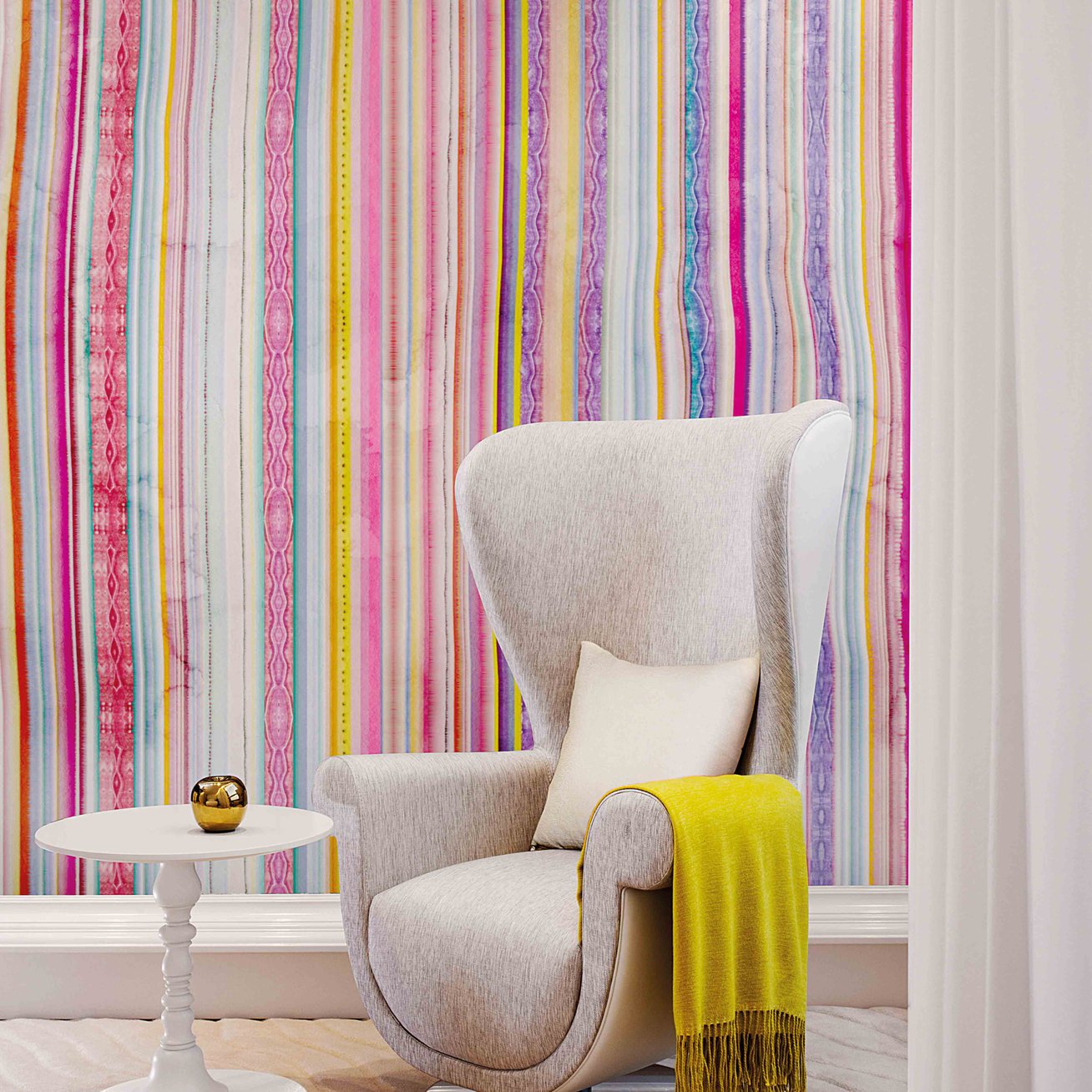 The Melbourne Wallpaper by London Art creates a funky, colorful visual pattern painted on any wall in the home for a minimalistic, elevated look.