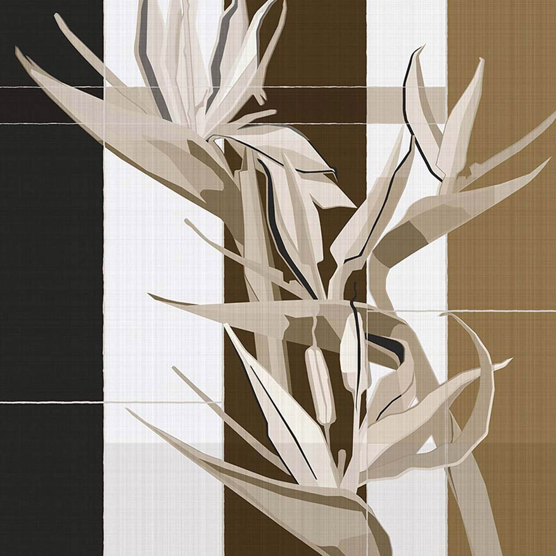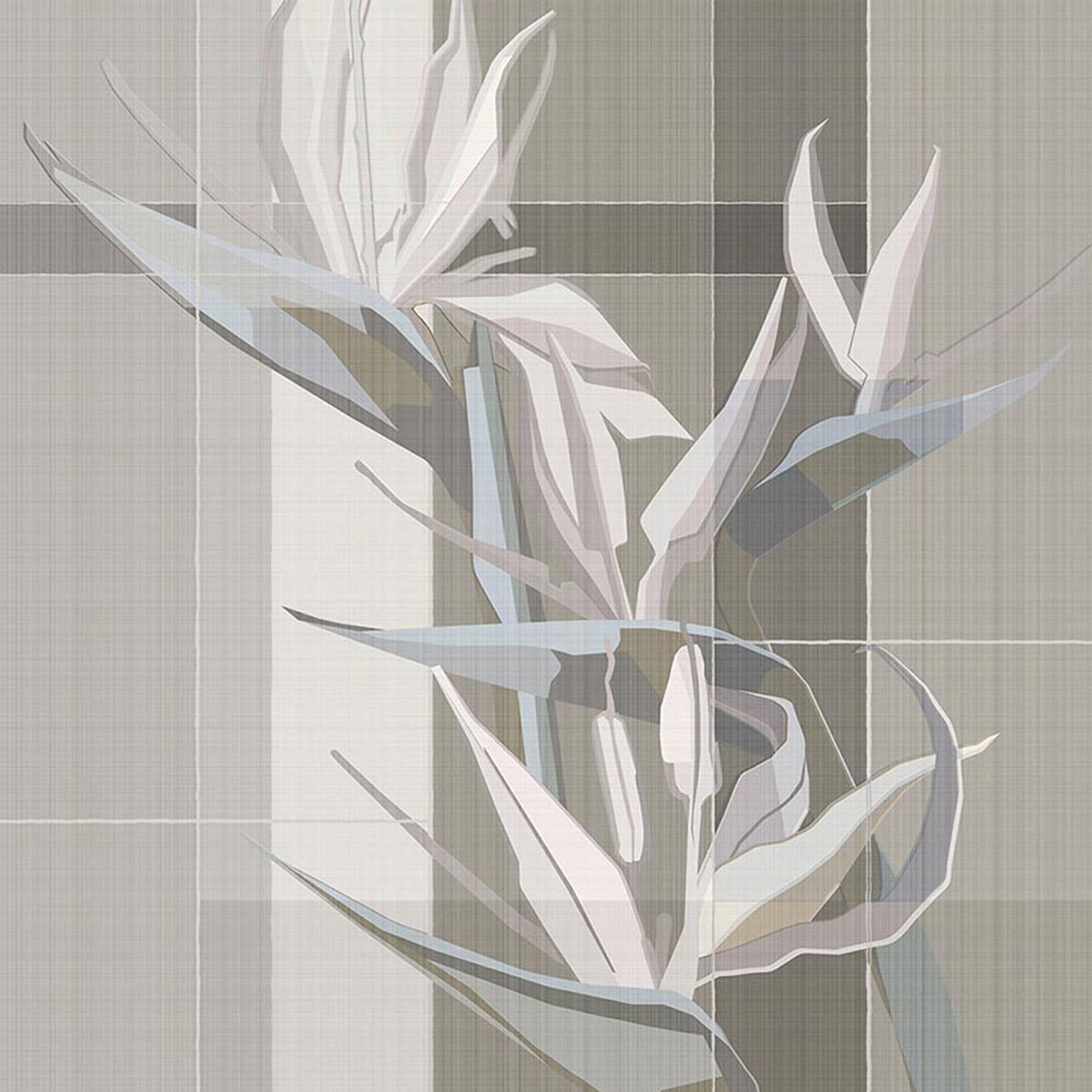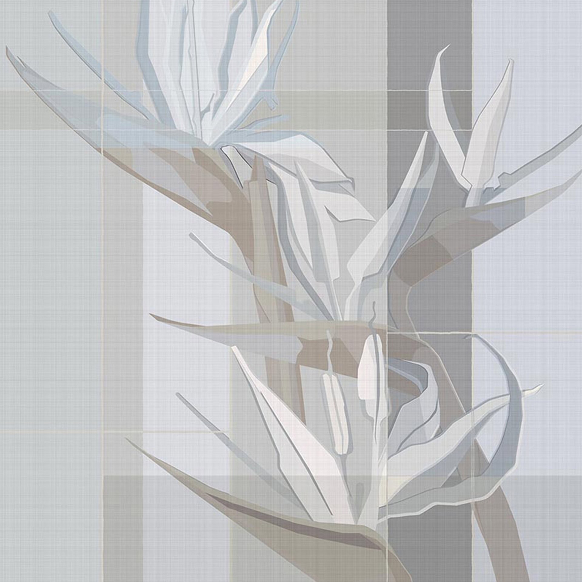 In the past, the Strelitzia flower was the flower of choice to send to royal families for its majesty and elegance. By presenting well-defined shapes and colors on a large-scale image, the main characteristics of the plant on the Strelitzia Wallpaper are reversed. By enlarging its dimensions ironically, its contours and tones are softened, resulting in an effect of composite, but evanescent, imagery that plays on transparency.