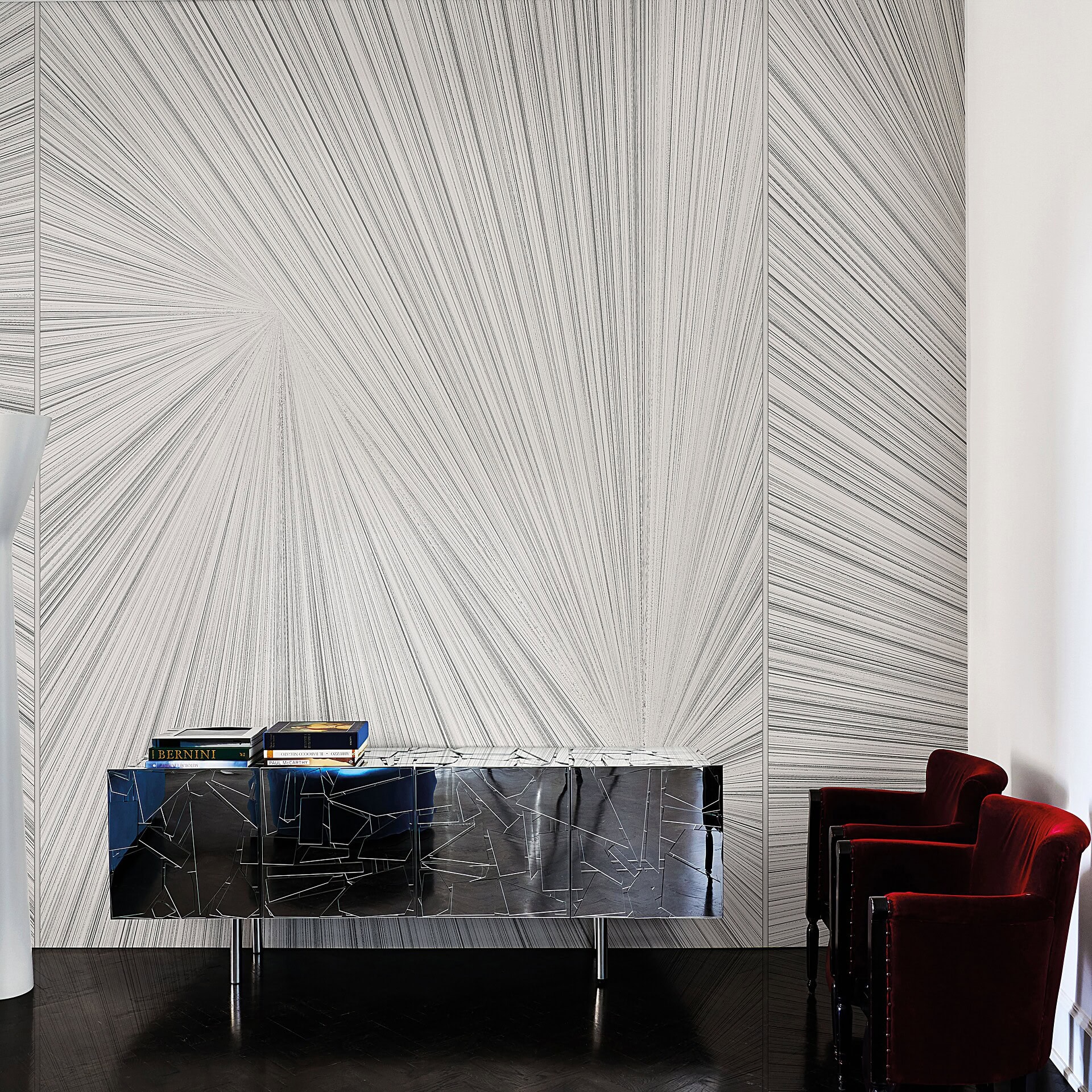London Art's Vortex Wallpaper takes a classic spin on using geometric lines and playing with form. The use of sharp lines against a minimalistic background aid in bringing this printed piece to life. Amplify your space in an effortless way, while elevating and invigorating to create dynamic movement and contrast all at the same time. Vortex takes your space on a ride through striking visual appeal.