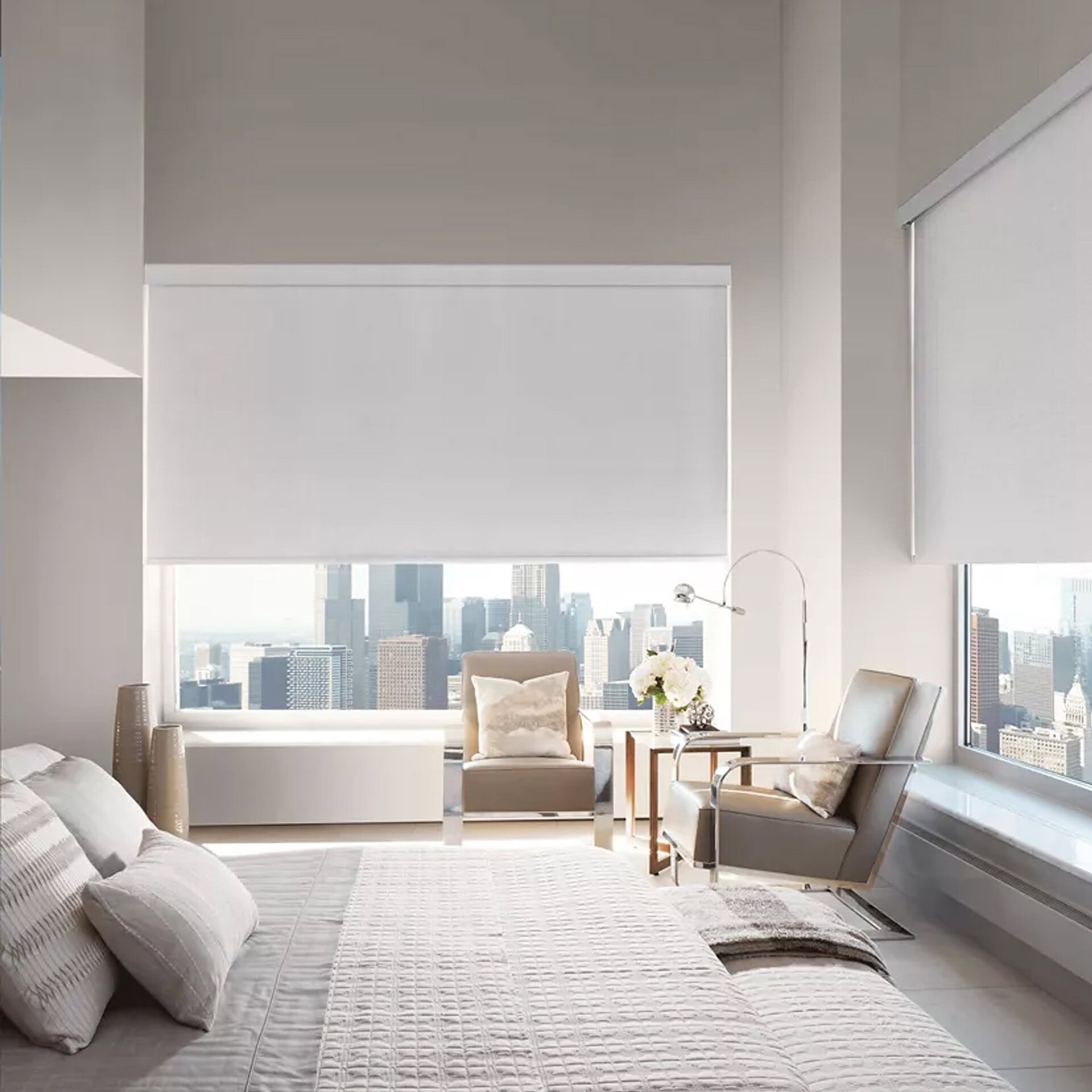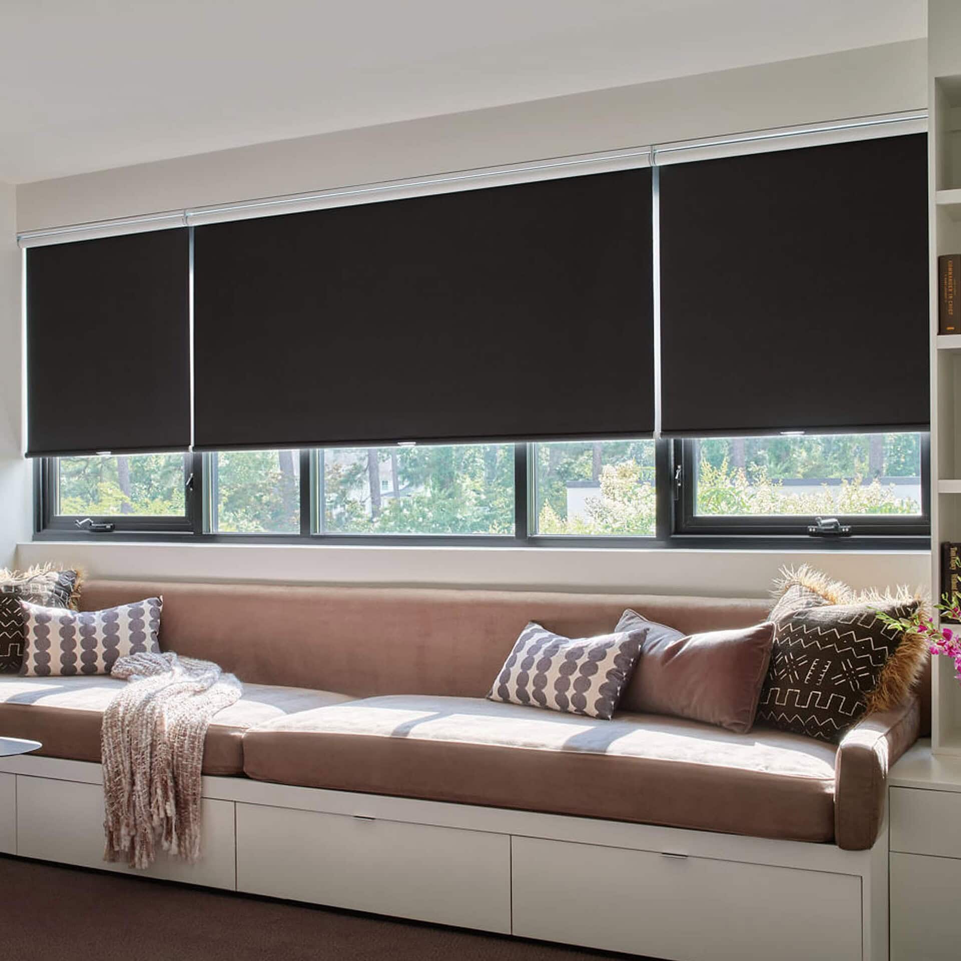 Designer Roller Shades can be tailored to fit a wide range of window sizes and shapes, including bay and corner windows, curved and angled configurations, providing a perfect fit for unique architectural designs. Please speak with a design associate for more options.