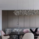 The Argent 6 Linear Multi Light Pendant is a perfect complement to go above a dining table; offering depth and scale in the most elegant fashion.