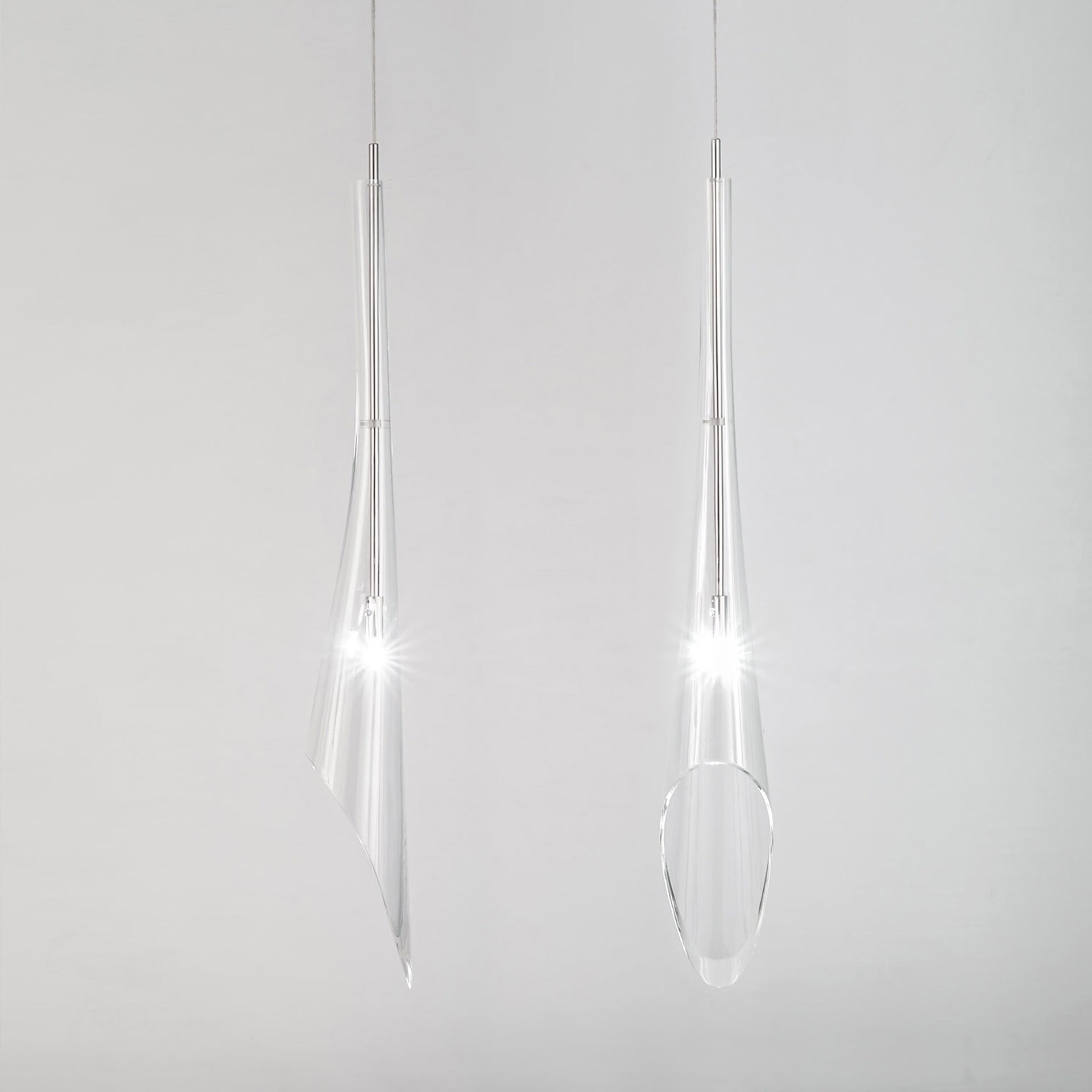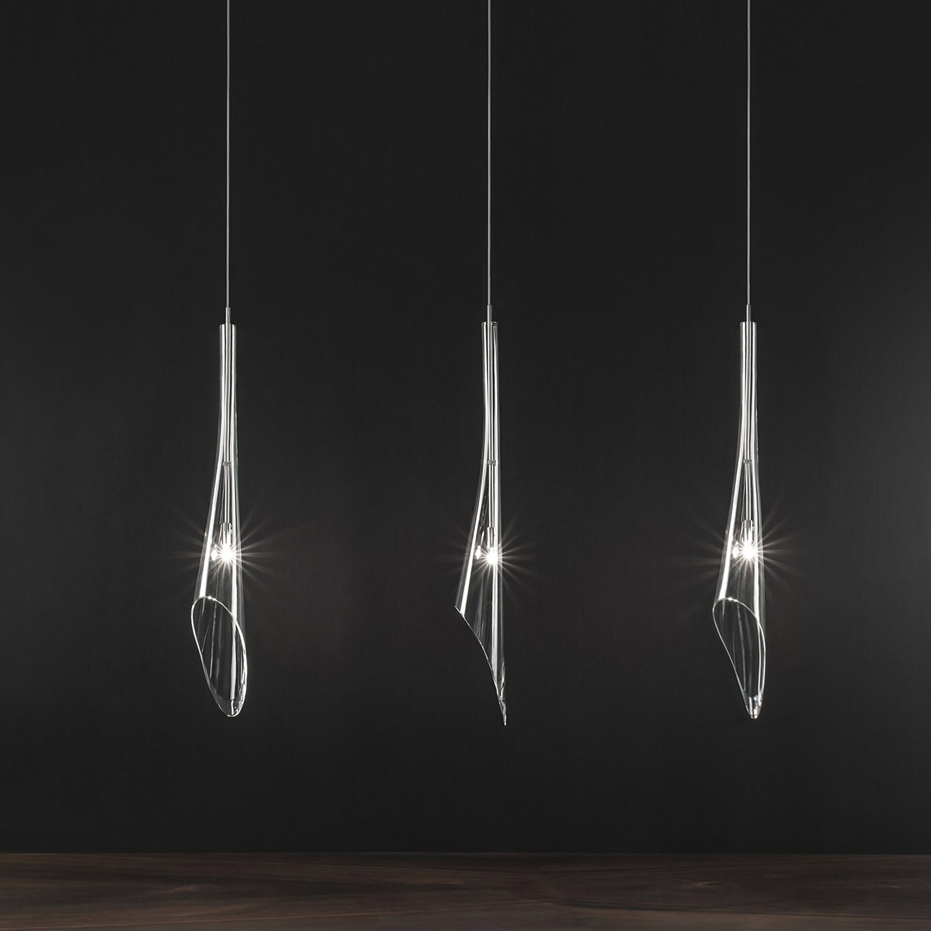 The Calle Pendant Light by Draw (Luca Martorano and Mattia Albicini) brings a contemporary elegance to crystal lighting. Handcrafted in Italy, each pendant is a slender, inverted flute of 24% lead crystal—its form inspired by the graceful calla lily. When illuminated, Calle radiates mesmerizing light refractions, showcasing the clarity and brilliance that crystal glass offers over standard glass.