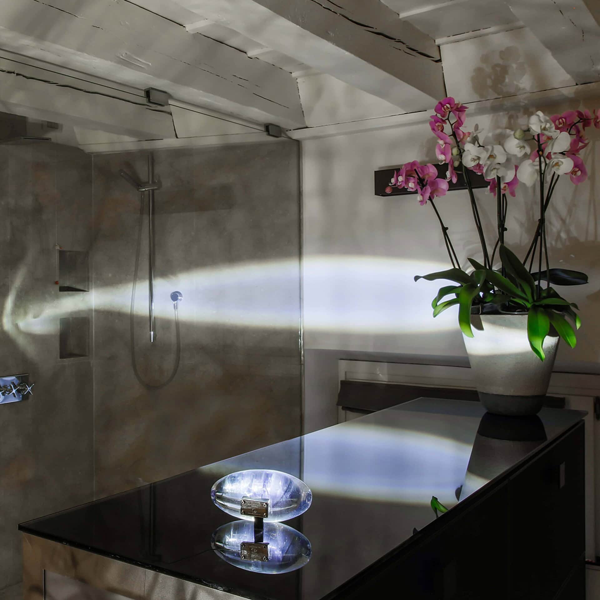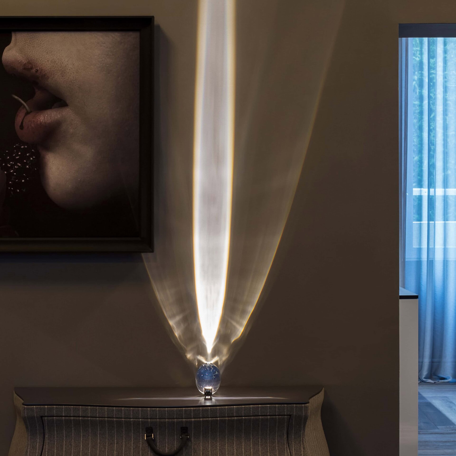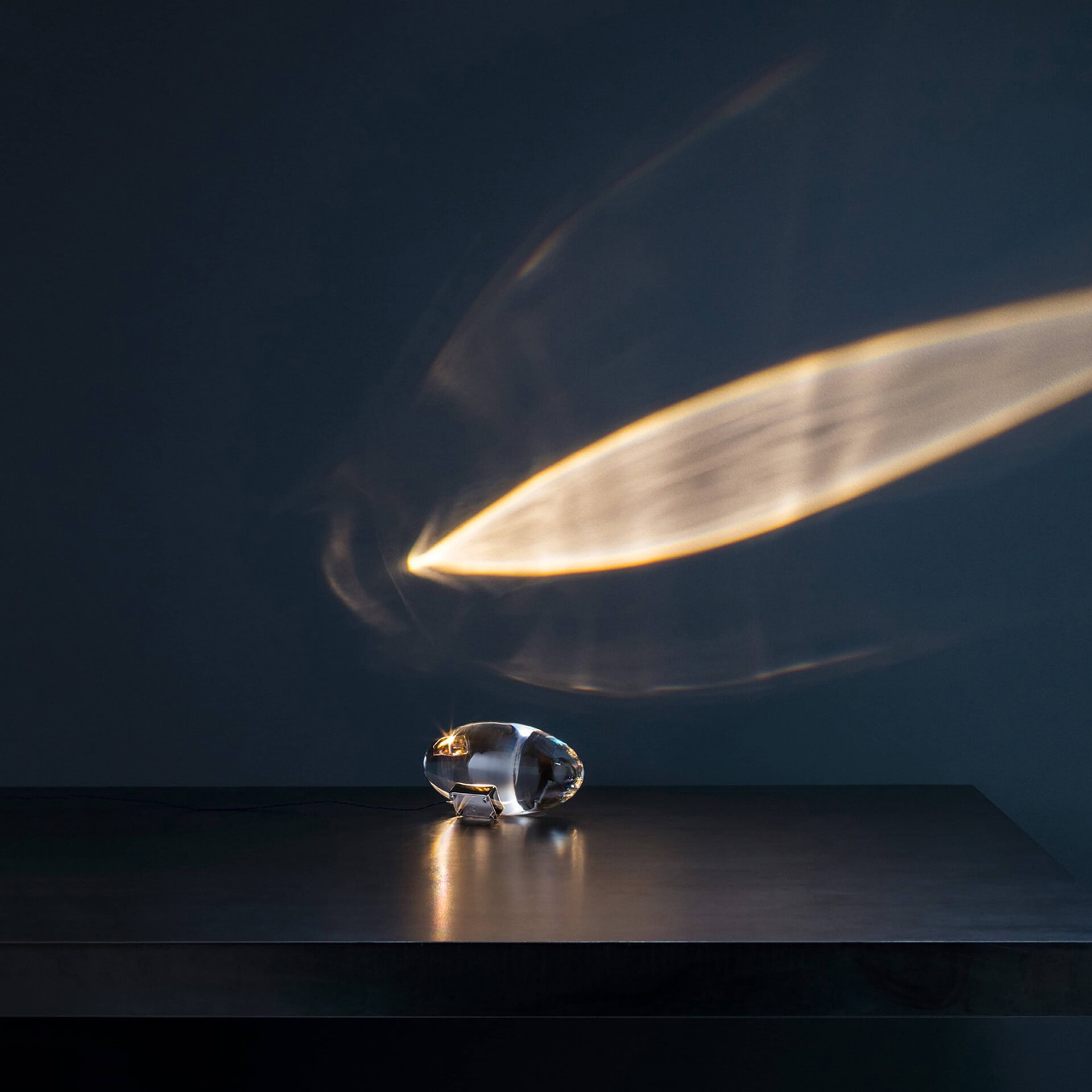 Enzo Catellani's first experiment with a LED light source was Atman, which came to him by chance. As a result of a trip to India, he came into contact with a culture that combines spirituality and misery, silence and chaos. Enzo Catellani found holy oval stones here and recreated the shape with glass. The name ‘Atman’ comes from a Sanskrit word meaning “soul”.