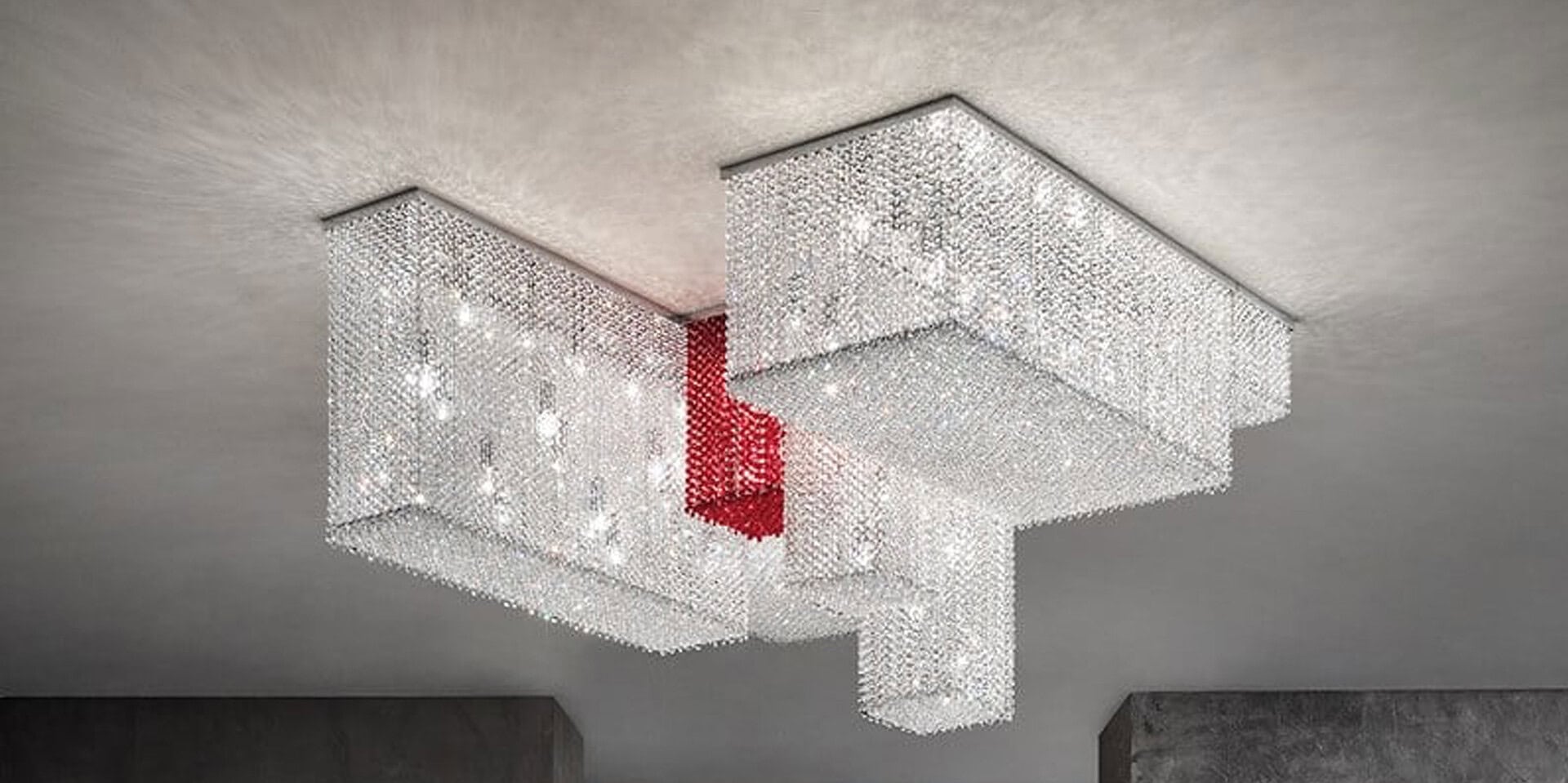 The Cubo PL/COMBO 175 SQ is the perfect ceiling lamp for adding a touch of luxury and elegance to any room. Its chromed finish metal frame and eye-catching transparent or colored crystal pendants will be sure to sparkle and shine. This stunning ceiling lamp will instantly become the focal point in any room, with the light reflecting off of the crystals to create a stunning, dazzling effect.