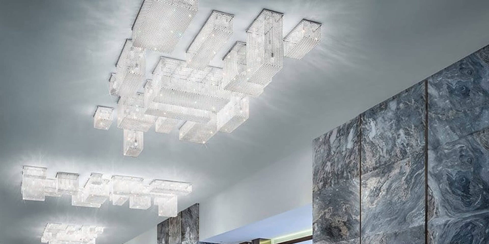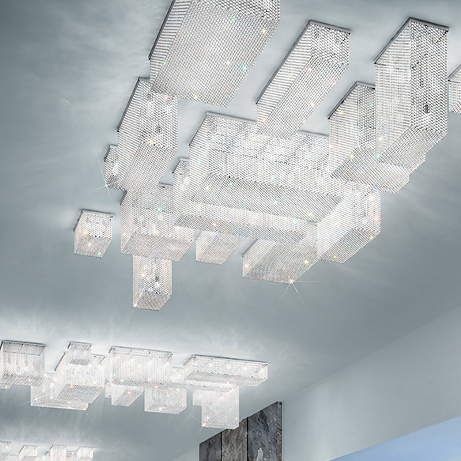 The Cubo PL16 200 RC ceiling lamp is perfect for adding a touch of glamour to any room. The chromed finish metal frame creates a modern look, while the transparent or colored crystal pendants provide a touch of sparkle. The Cubo PL16 200 RC is easy to install and provides great illumination for any room.