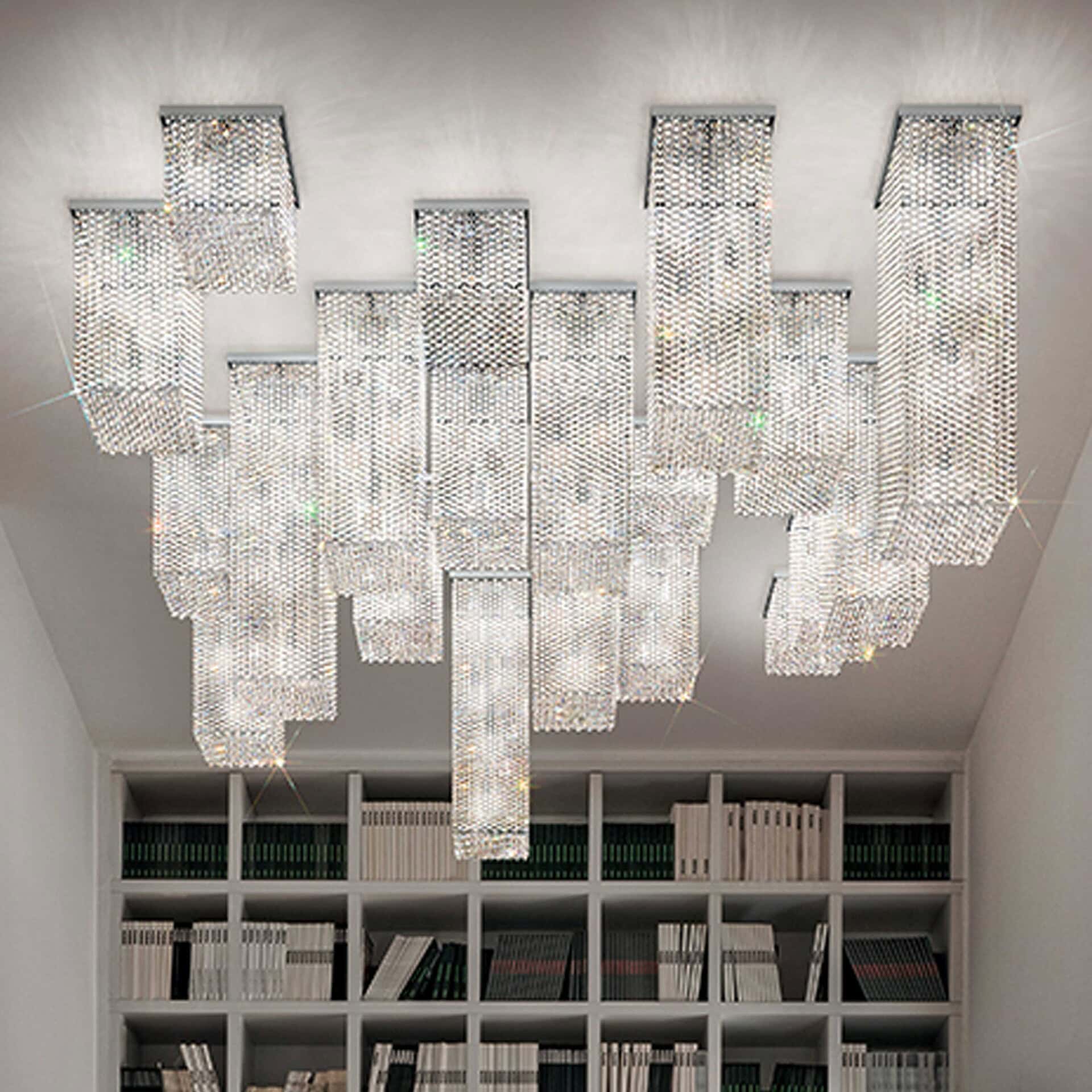 The Cubo PL21 200 SQ Ceiling Lamp is perfect for adding a touch of modern elegance to any room. Crafted with a chromed finish metal frame and transparent or colored crystal pendants, this lamp is sure to make a statement. The sleek and simple design ensures a timeless aesthetic, while the unique crystal pendants lend an air of sophistication. Perfect for living rooms, dining rooms, and bedrooms, this lamp will blend seamlessly into any décor.
