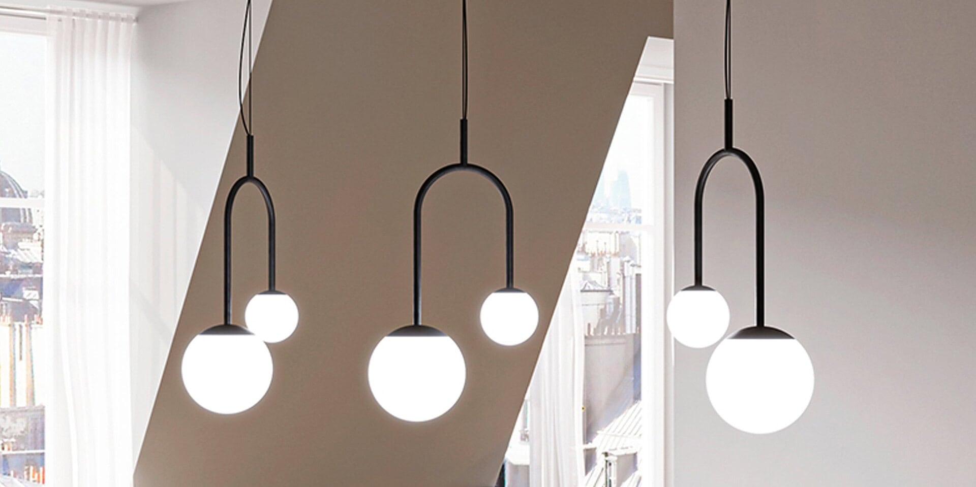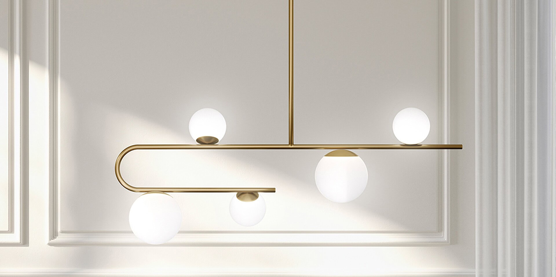 The balance between thin metal strokes and white glass spheres is played within the Decor collection. All living spaces can use it, and the precious metal finishes enable it to provide open and brilliant points of light. Available as a table lamp, a stylish reading lamp, or a pendant light.