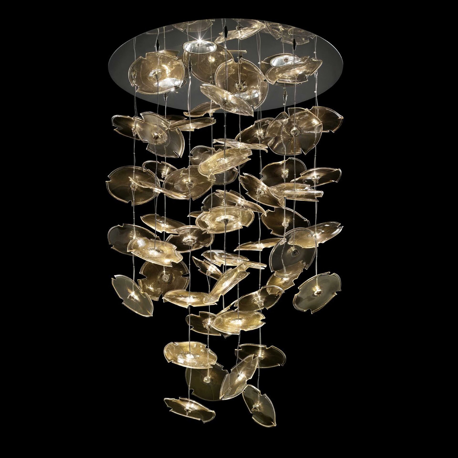 The Exagon Suspension Lamp embodies the mesmerizing beauty of nature's illumination. Inspired by the enchanting dance of fireflies, this captivating lamp casts a spellbinding glow, transforming any space into a whimsical wonderland. Like delicate lotus leaves floating in mid-air, the lamp's transparent design is adorned with intricate gold flakes or soft pastel hues, creating a stunning visual display.
