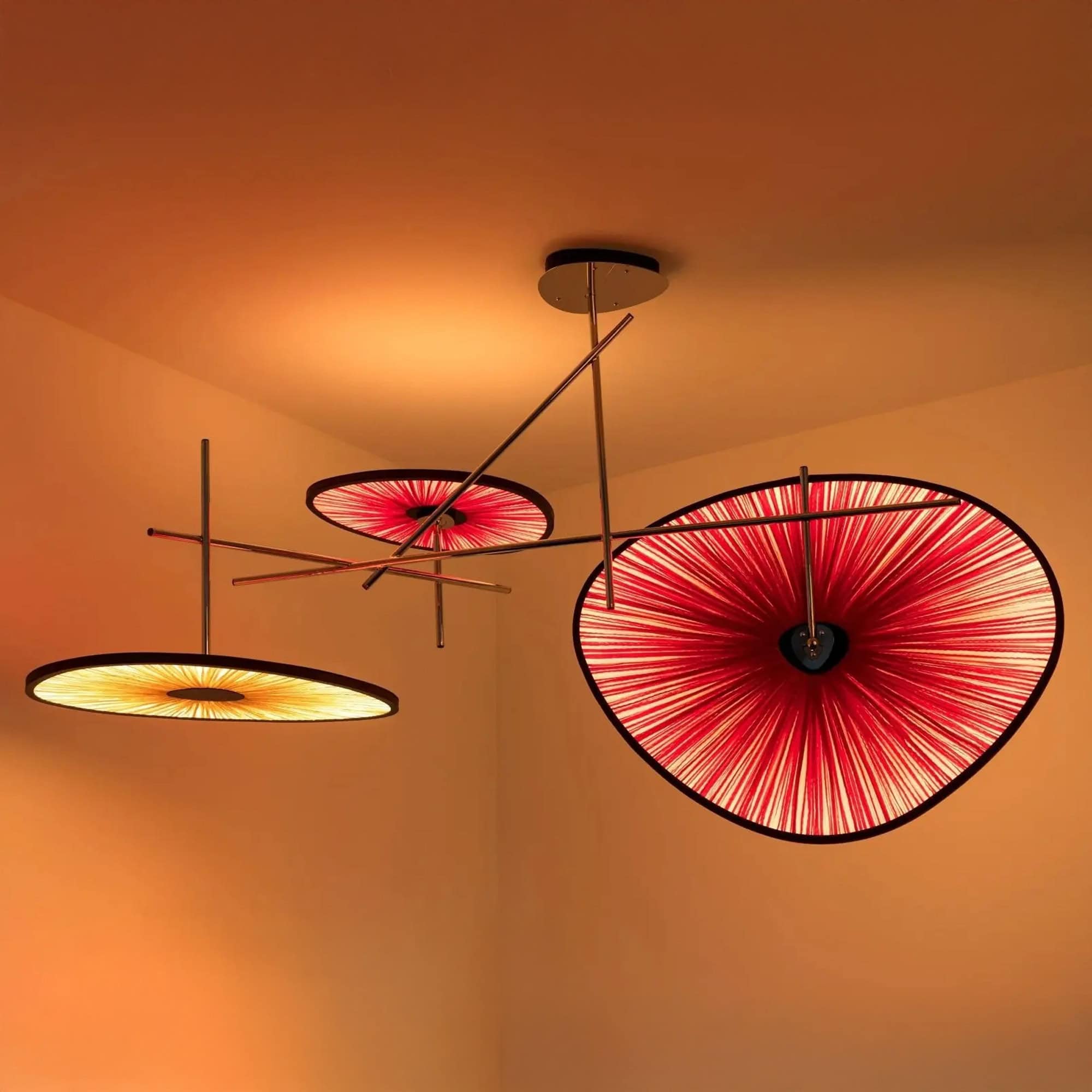Crafted with a blend of natural silk, acrylic, microfiber, and metal, the Lake Doiran Ceiling Light 3 combines luxurious materials with refined craftsmanship. Integrated LED strips provide energy-efficient illumination while enhancing the lamp’s organic form. Measuring 200 cm in length, 120 cm in width, and 70 cm in height (78.7" × 74.2" × 27.6"), this ceiling lamp is compatible with both 120V and 240V systems. Offered in Aqua Creations' signature palette of luminous silk hues, the fixture is tailored to elevate sophisticated interiors.