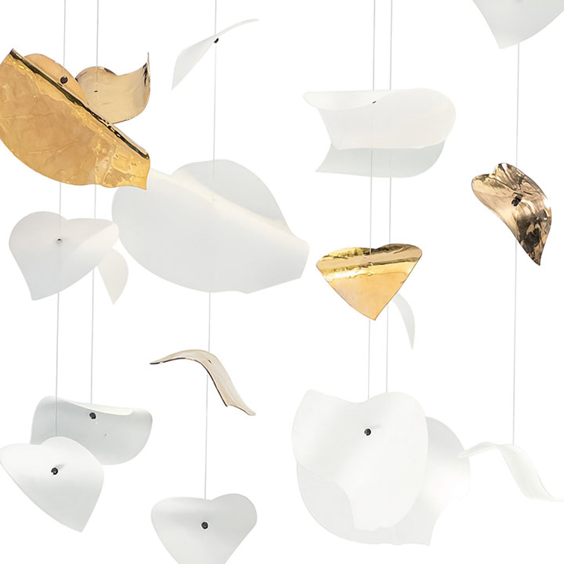 [vc_row][vc_column][vc_column_text css=""]More than just a source of light, the Leaf is a celebration of craftsmanship and material beauty. Its modular design is available in multiple sizes—from minimalist compositions to expansive, cascading installations—making it suitable for both residential and commercial spaces. For added refinement, the glass leaves are optionally available in a luminous 24K gold finish, blending artisanal tradition with contemporary sophistication.[/vc_column_text][/vc_column][/vc_row]