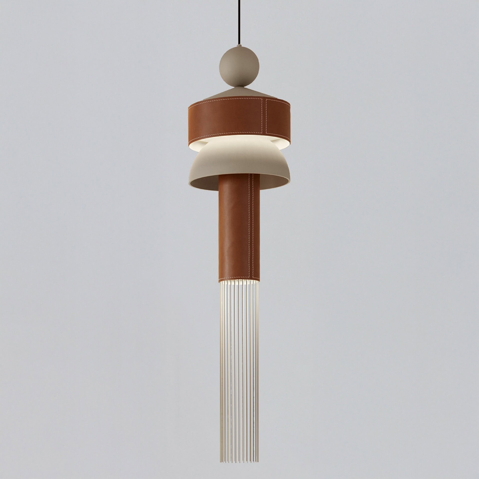 The Nappe XL Series is a striking embodiment of elegance and functionality, designed to enhance contemporary interiors with its sophisticated aesthetic. Each model—Nappe Xl1, Xl2, and Xl3—features a meticulously crafted structure of painted metal with intricate glass rods, highlighted by the option of luxurious leather inserts. This series offers versatile LED lighting options with uplight and downlight capabilities, delivering a warm 3000K glow. Equipped with advanced dimming controls including 1-10V, PUSH, and DALI, each fixture allows for precise ambiance customization, making them ideal for both residential and commercial spaces.