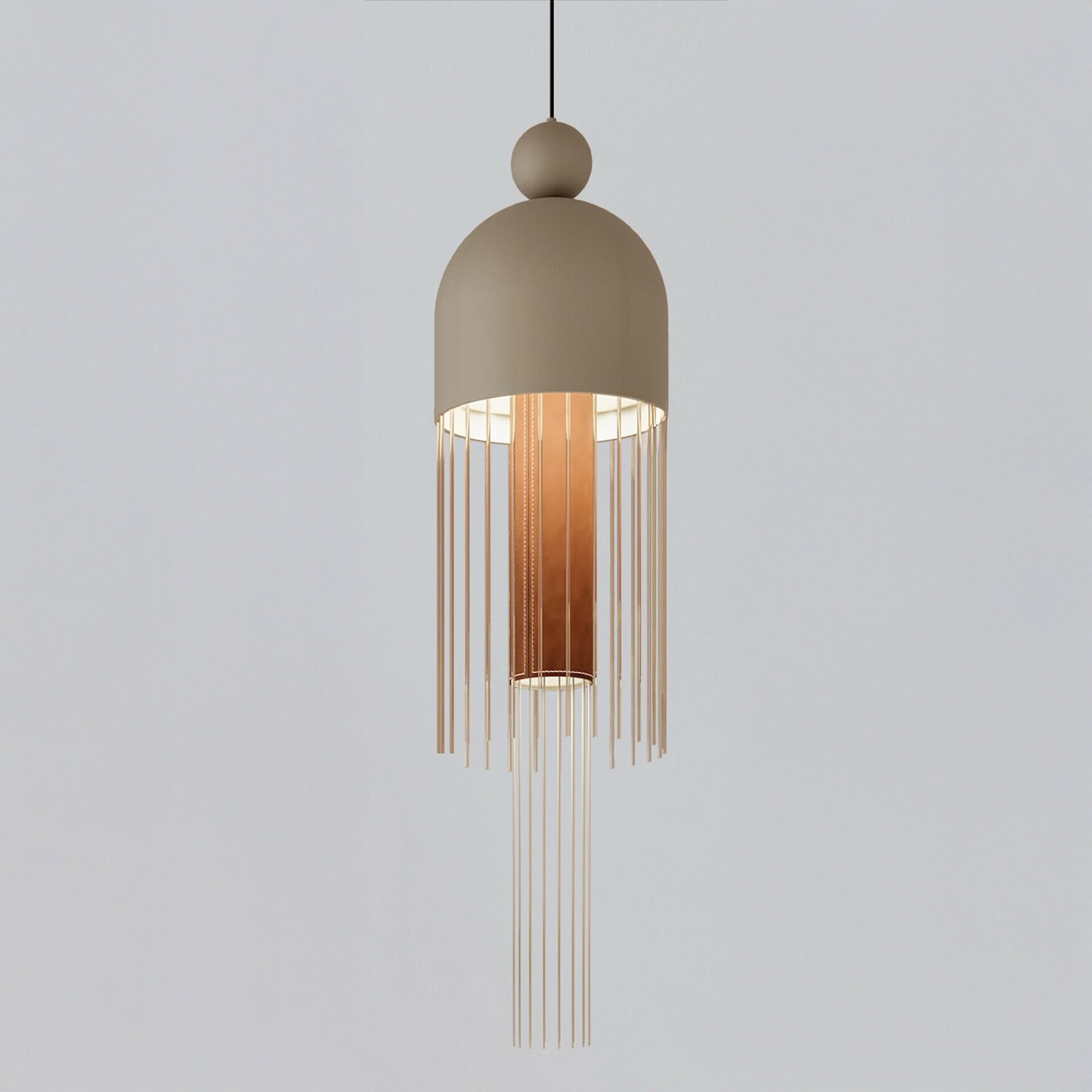 Gold pendant light fixture for contemporary interiors.
