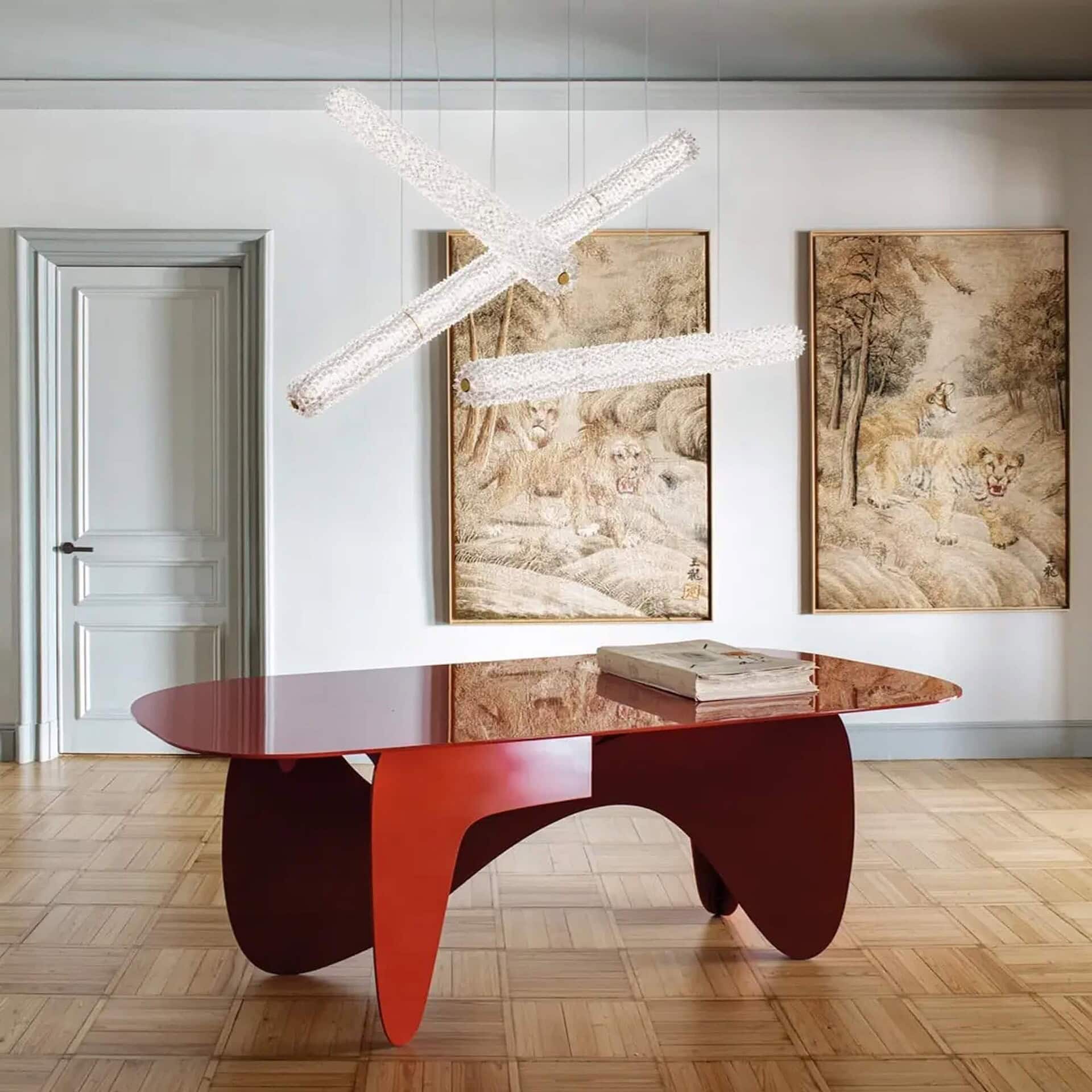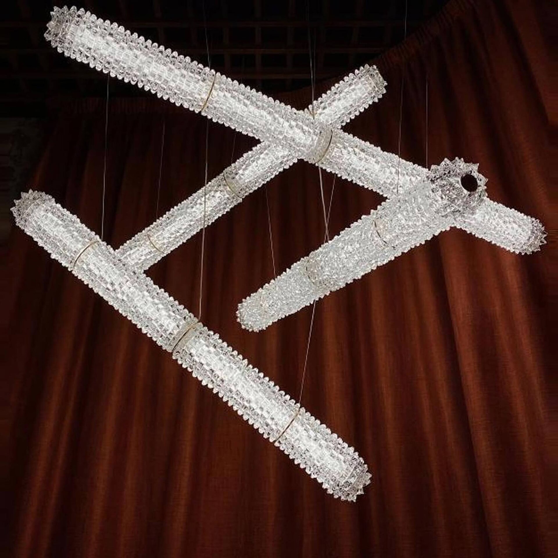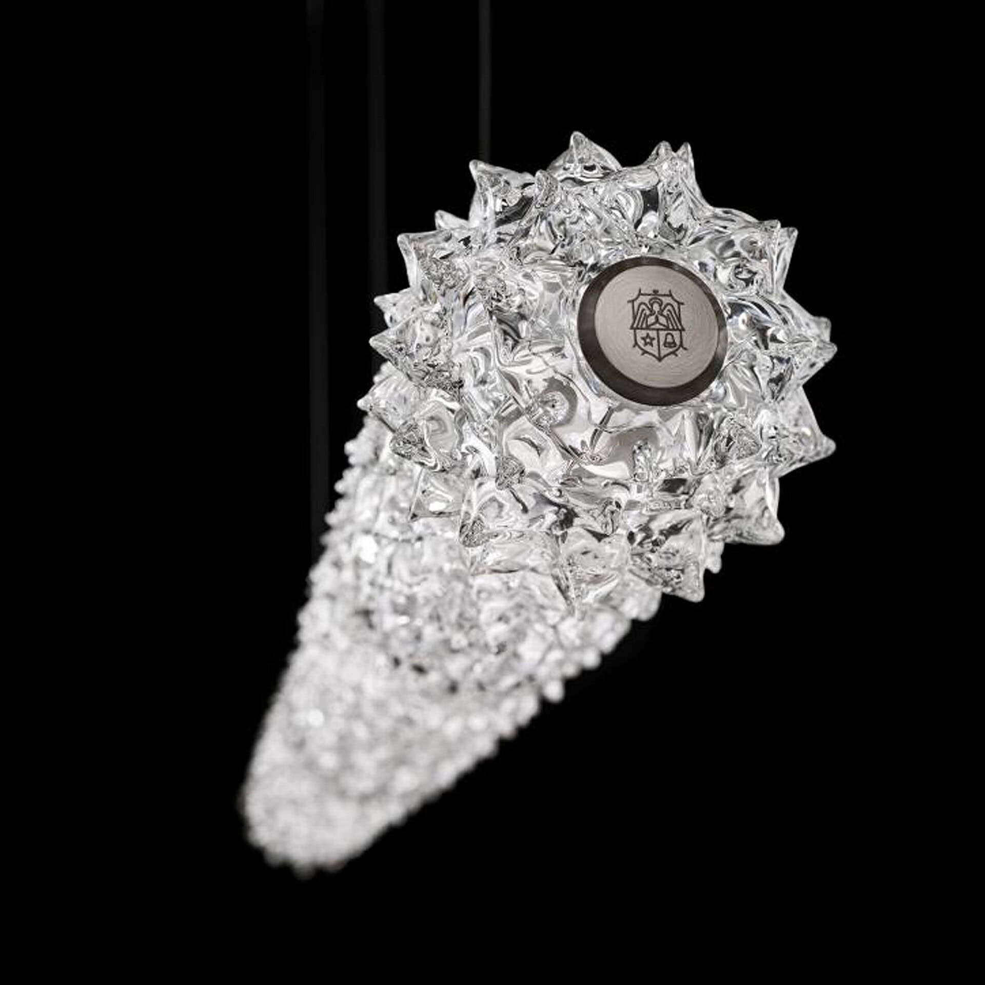 The Opéra Suspension Lamp by Philippe Nigro is a striking tribute to the ornate grandeur of the Opéra Garnier. Its cylindrical shape showcases the distinctive rostrato technique—an intricate crystal pattern that diffuses and refracts light through a dense layer of three-dimensional spikes. This refined design transforms illumination into an immersive visual experience, making Opéra ideal for both dramatic residential settings and expressive large-scale installations.