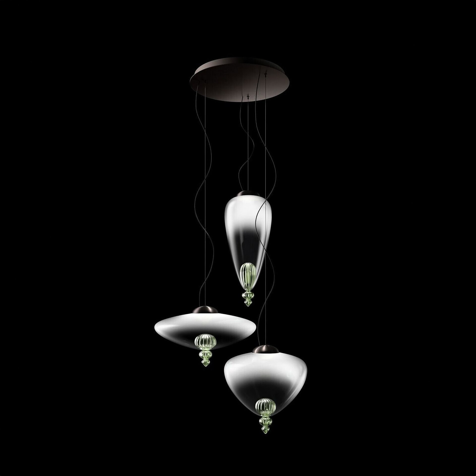 Padma is available in multiple sizes, offering options for both intimate and expansive spaces. Each configuration features hand-finished diffusers in shaded white or grey, and final elements in a wide palette of bespoke colors—ranging from Cognac and Ametista to Cadet Blue and Antalia Green. Finished in brushed gold or brushed black nickel, this collection is ideal for those seeking an expressive centerpiece with both artistic integrity and practical function.