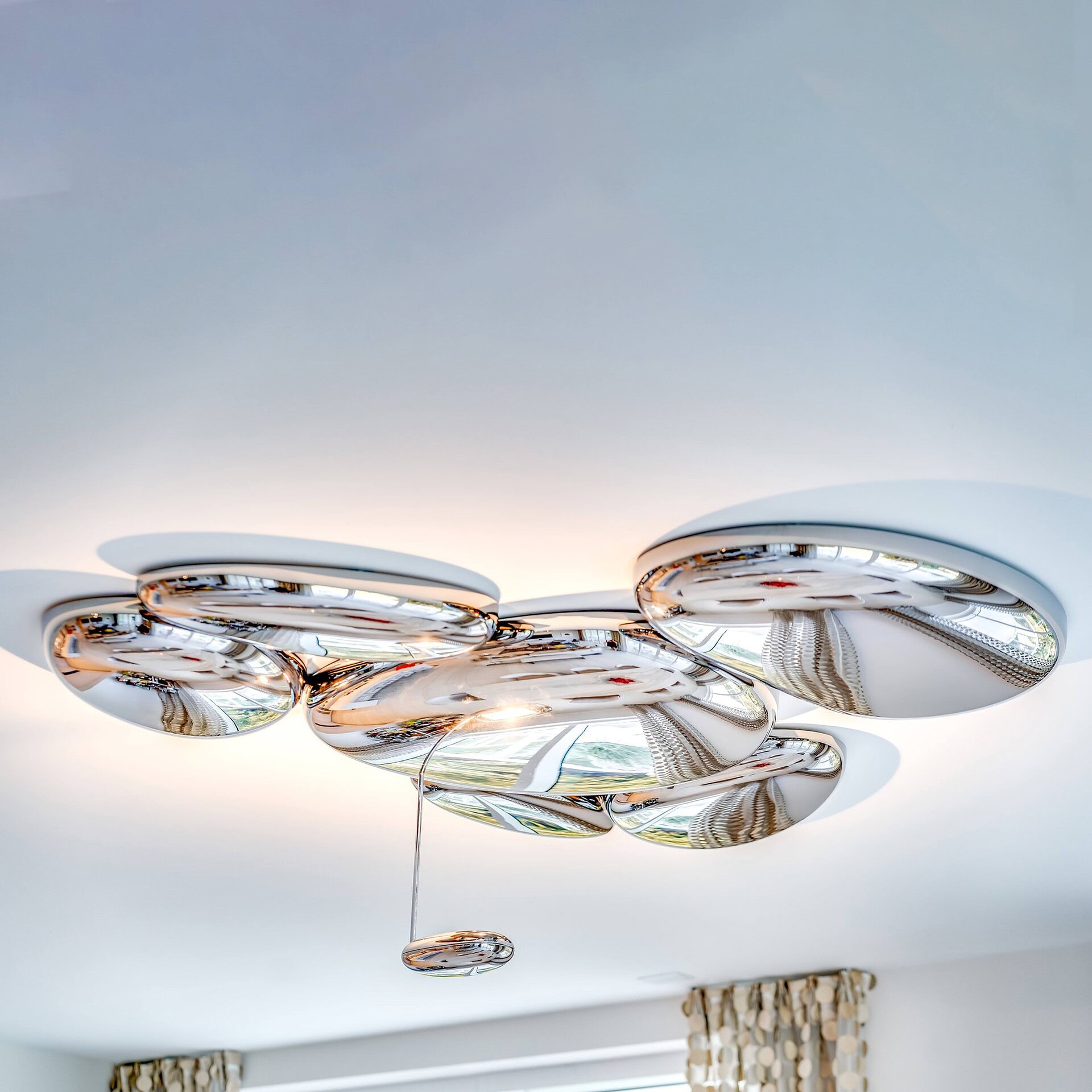 The Skydro Ceiling Light features a hydro-inspired design made up of a series of pebble forms that reflect light from biomorphic surfaces. Turn your ceiling into a work of art with this unique lighting piece. Warranted to meet or exceed industry standards.