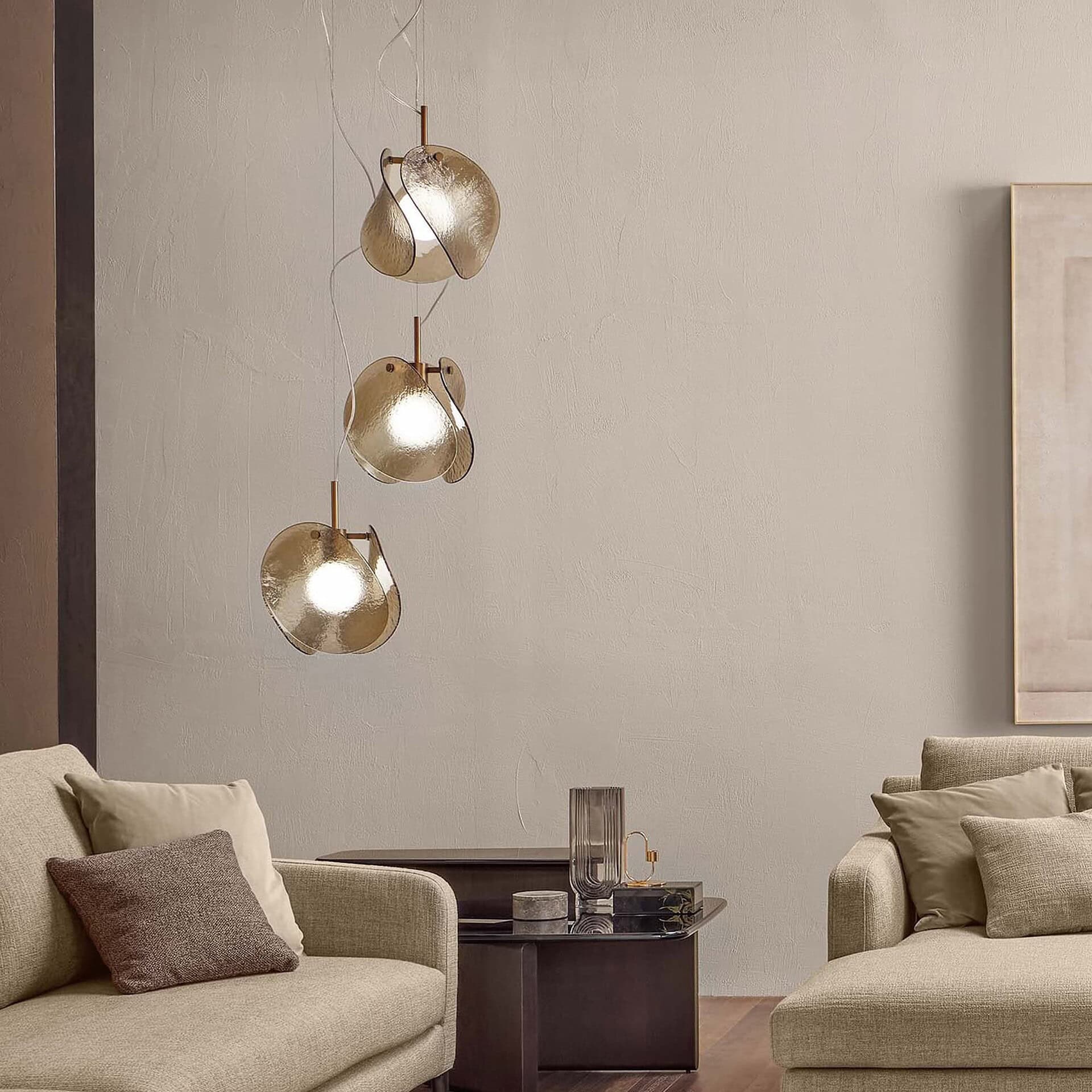 Designed by Ryosuke Fukusada, the Tau Pendant Lamp brings sculptural elegance and artisan craftsmanship to modern interiors. Its suspended form features a decorative diffuser made from three 6mm-thick fused glass elements, offering a soft glow and a dynamic sense of depth. Ideal as a statement piece in dining areas, entryways, or lounges, the Tau’s refined silhouette and rich materiality reflect FIAM Italia’s dedication to both innovation and timeless design.