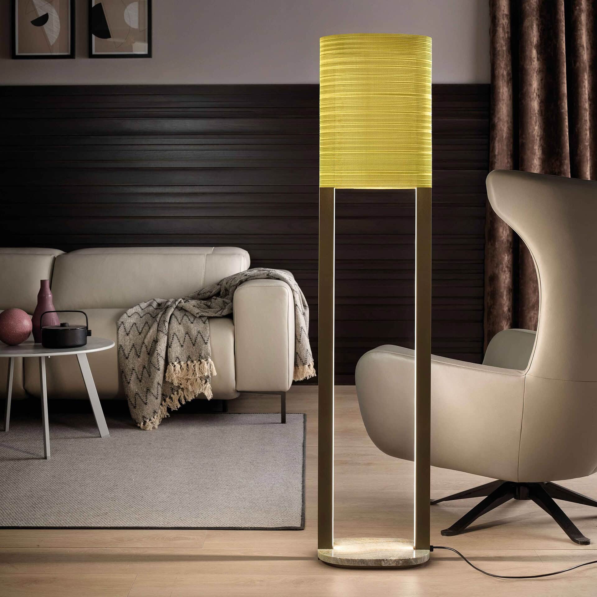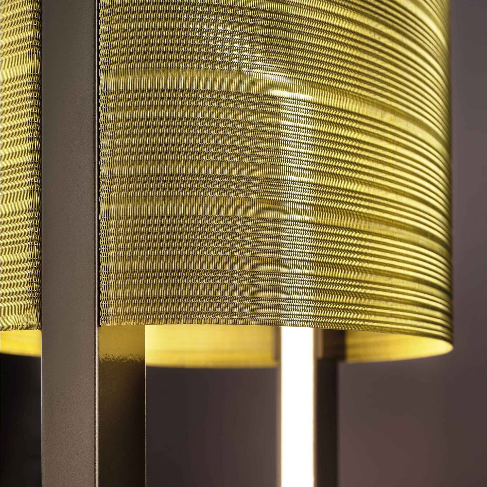 The Ebe Stl is an elegant lighting solution that will bring timeless beauty to your home. Combining metal, marble, and a brass wire mesh, this lamp creates luminous geometries with sleek, austere lines. The structure is painted metal, while the design features a brass wire mesh.
