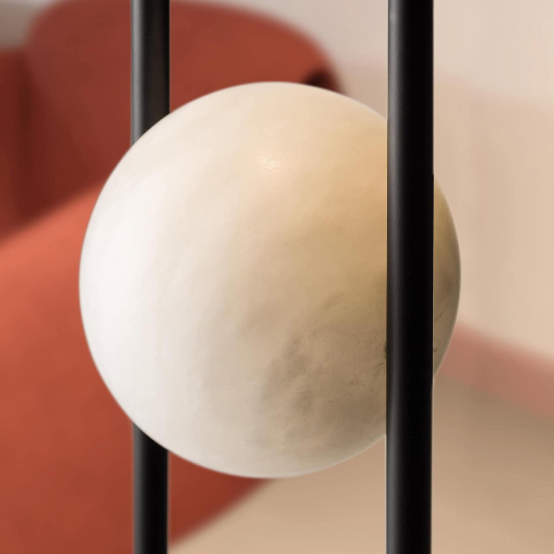Finished in sleek matte black, with the contrast of pure alabaster and metallic shine, this floor lamp is both eye-catching and versatile. It features a high-efficiency, non-dimmable 12.5W LED module that provides a comforting 3000K light at 1639 lumens. With a CRI of 90, it ensures optimal color accuracy and richness. Ideal for contemporary interiors, the Luppiter Sphere Floor Lamp is perfect for living rooms, reading nooks, or anywhere a touch of artistic illumination is desired.