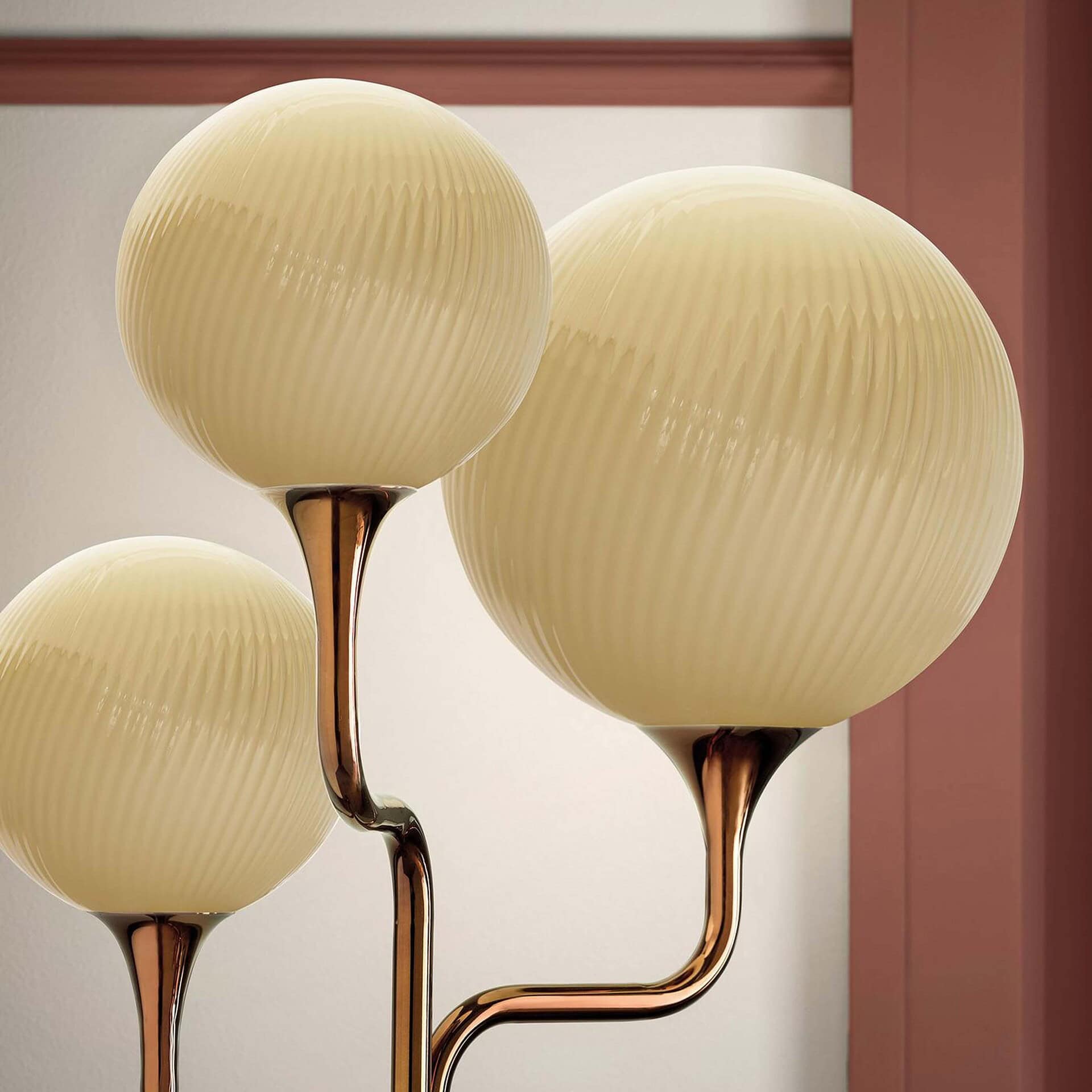The Tee Stl 3 floor lamp adds a touch of sophistication and style to any living space. Its unique curved form and organic shape give it a distinct character and charm that is both eye-catching and elegant. The galvanized metal frame and Murano triplex glass diffuser create a soft, warm glow that will bring any room to life. Its undulating shape reflects the light in a captivating way, reminiscent of the gracefulness of the calla lily flower.